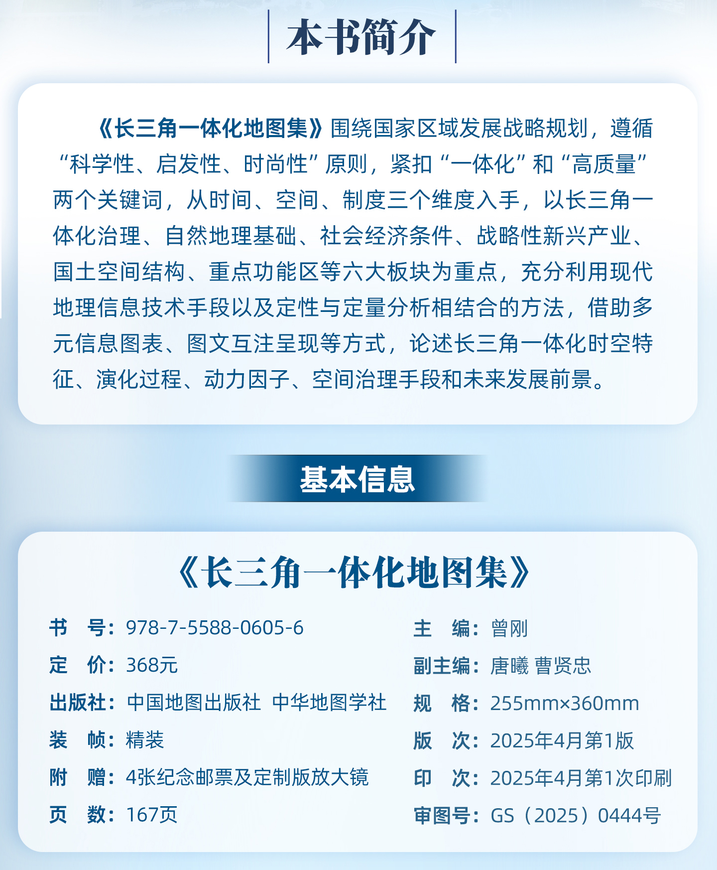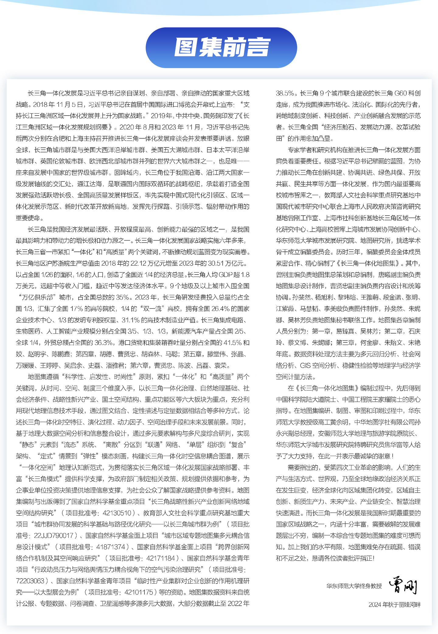 长三角一体化地图集 治理 自然地理基础 社会经济条件 战略性新兴产业 土空间结构 重点功能区 图文结合 定性描述 定量数据结合