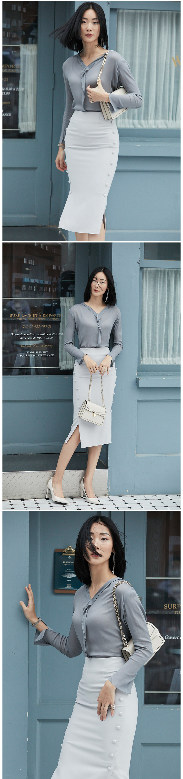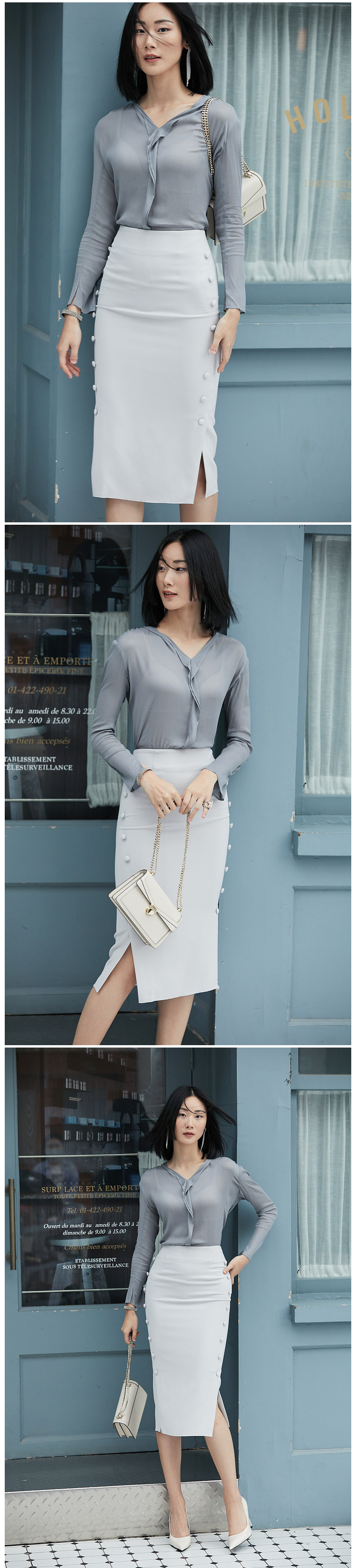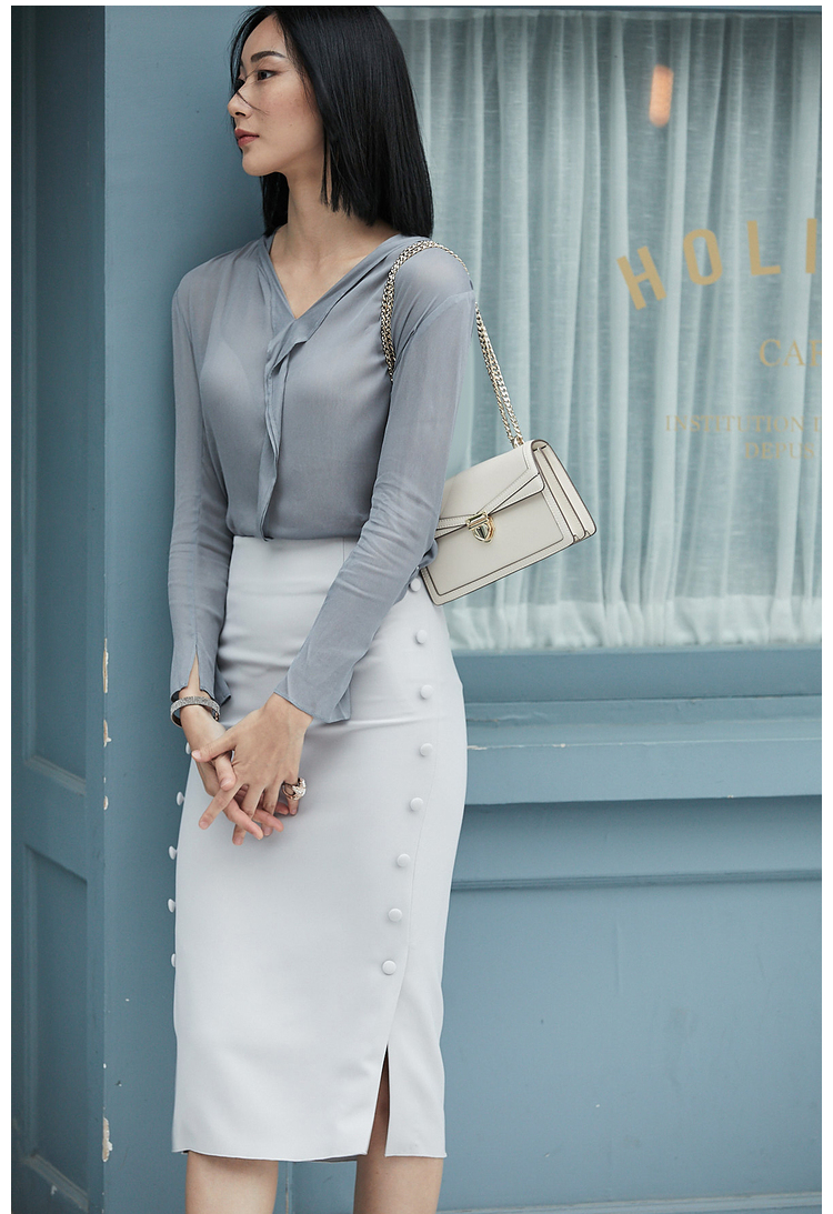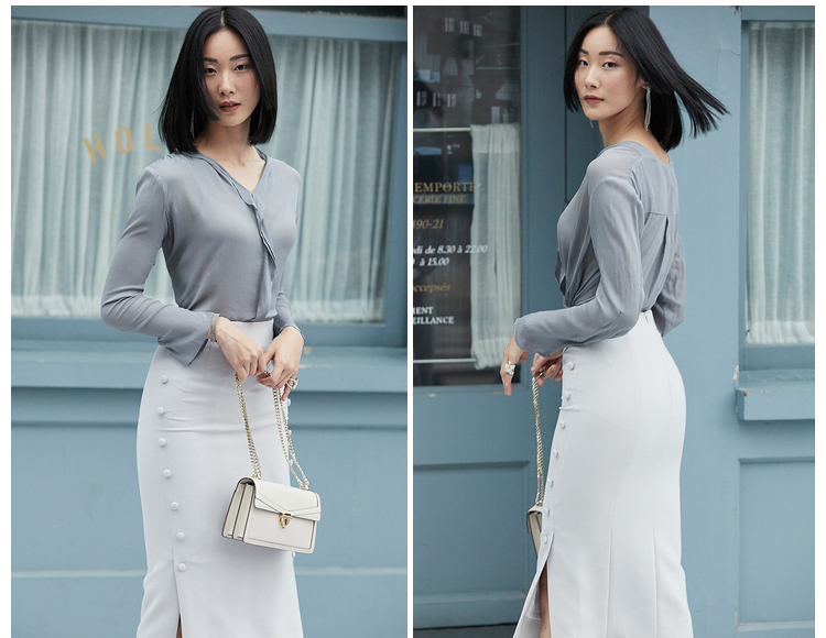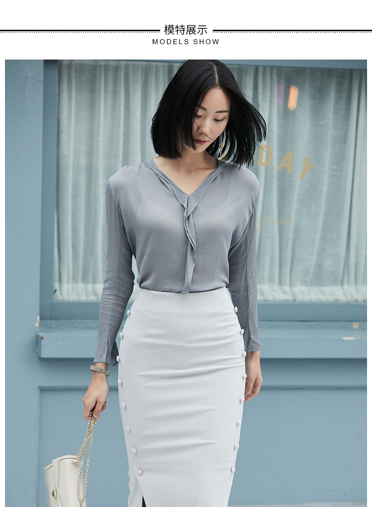 孤品 “涟漪” J9333880A颈袖添香新款ol衬衫修身时尚纯色女士衬衣J9333880A(四季可穿)不退可换