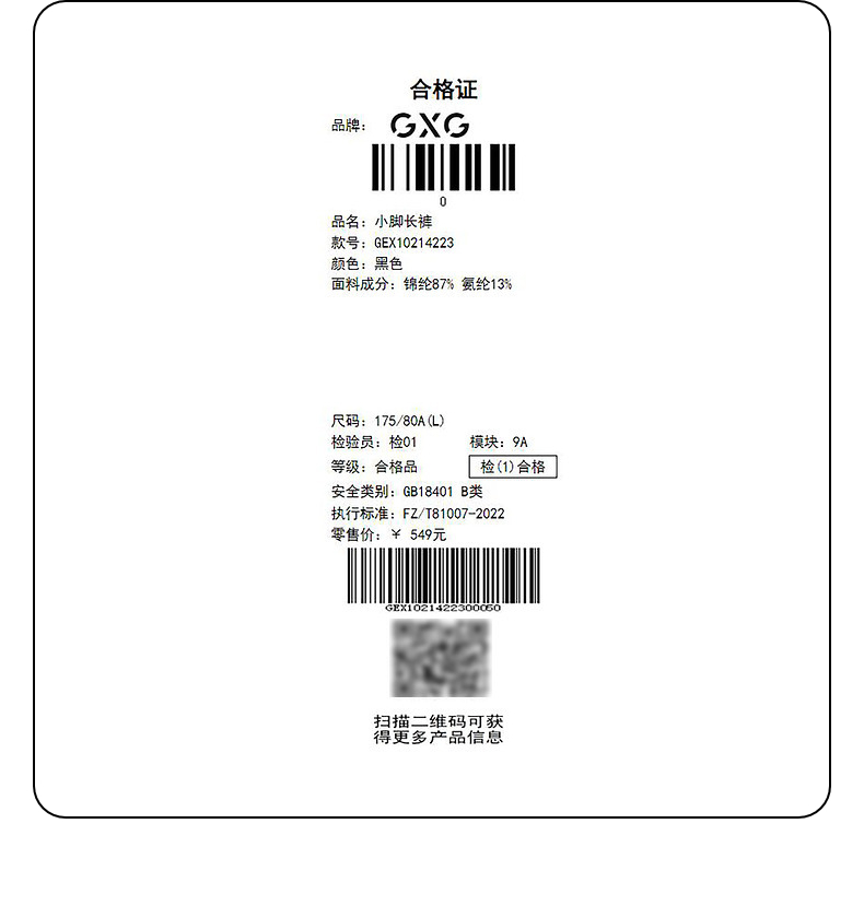 GXG男装 黑色弹力小脚休闲长裤 秋季热卖爆款休闲裤GEX10214223