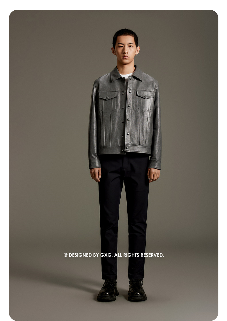 GXG通勤男鞋拼接厚底牛皮板鞋百搭休闲鞋