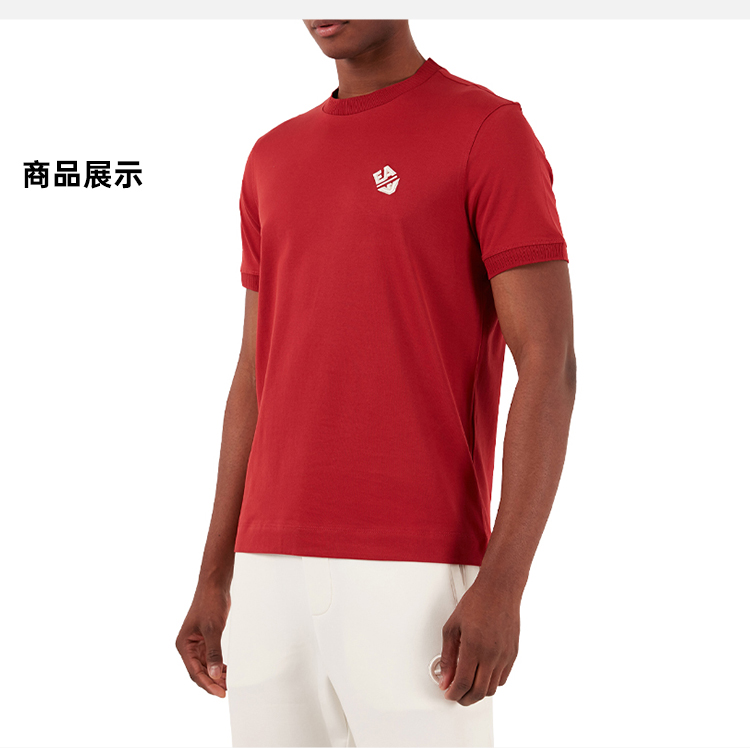 EMPORIO ARMANI 阿玛尼 男士刺绣徽标棉质圆领短袖T恤 红色 3D1TN3 1JOCZ 0365