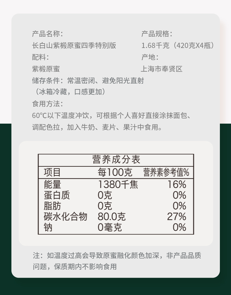 《南方寝饰员工专场》森蜂园-长白山紫椴原蜜四季特别版礼盒420g*4