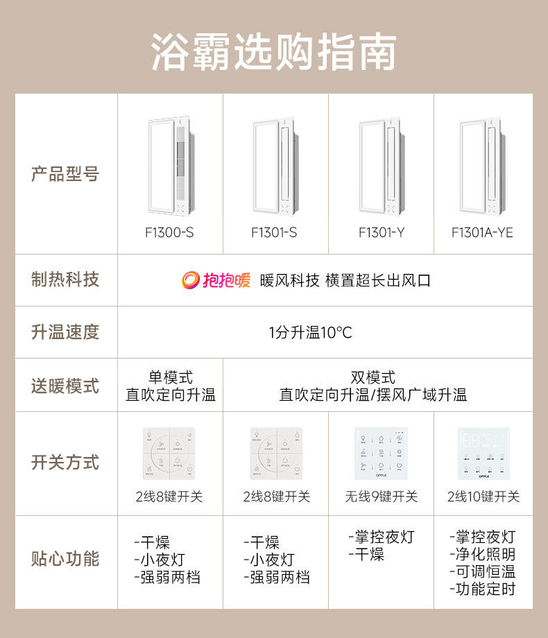 欧普(OPPLE)抱抱暖风暖浴霸取暖一体集成吊顶浴室卫生间排气扇暖风机F1301