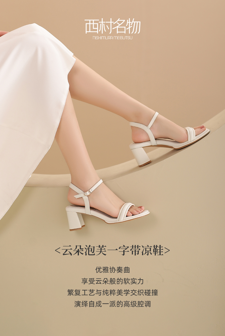 西村名物2024新品真皮精致经典纯高跟高级凉鞋女夏季外穿一字带X24BG20311