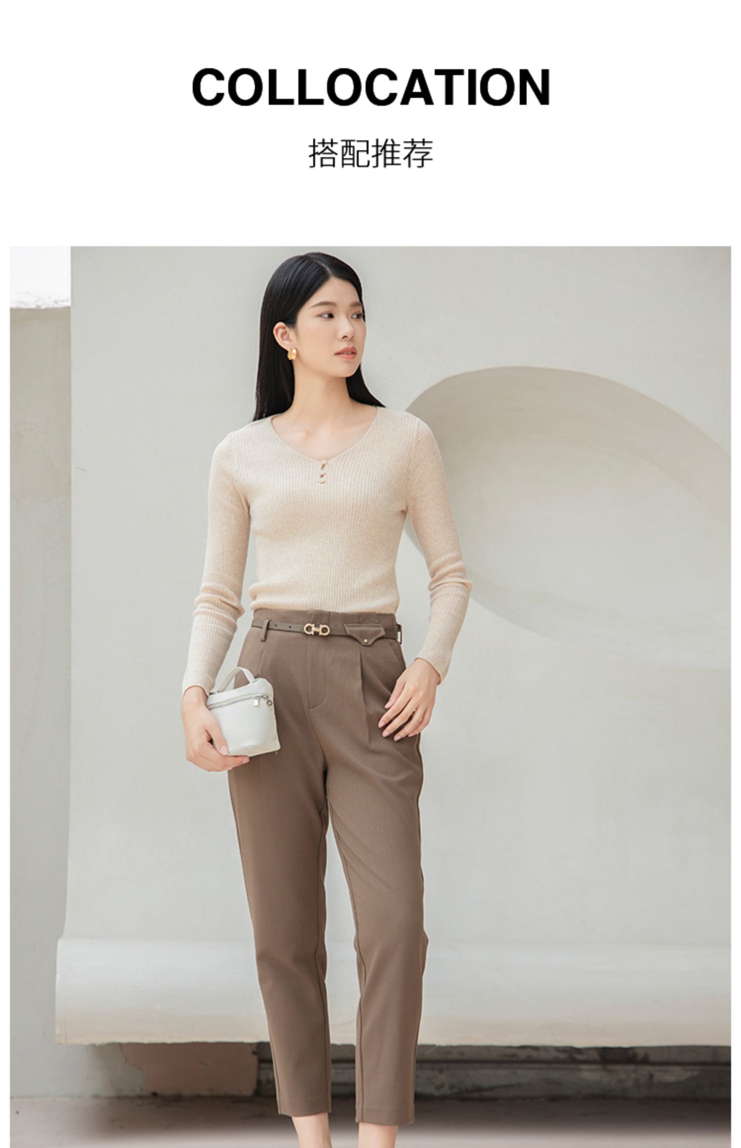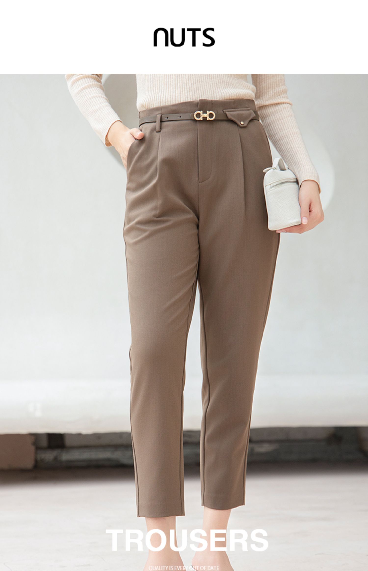 NUTS商场同款秋季宽松直筒显瘦纯色简约九分休闲裤女4390702A1