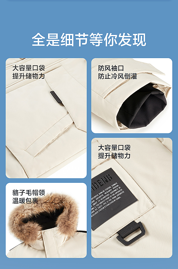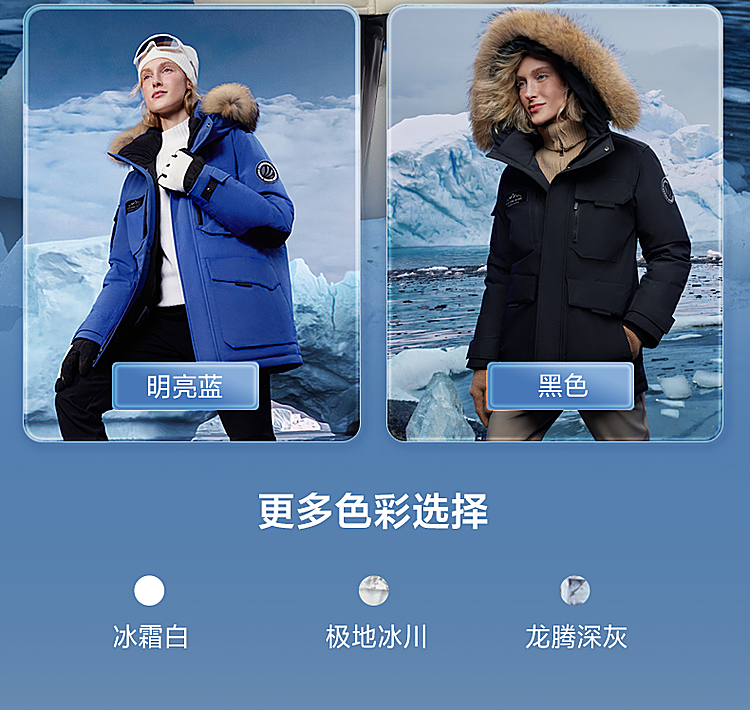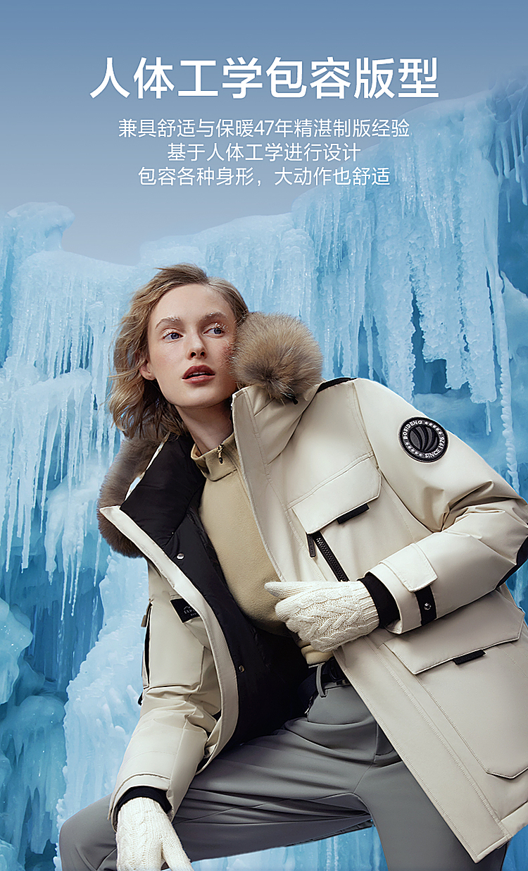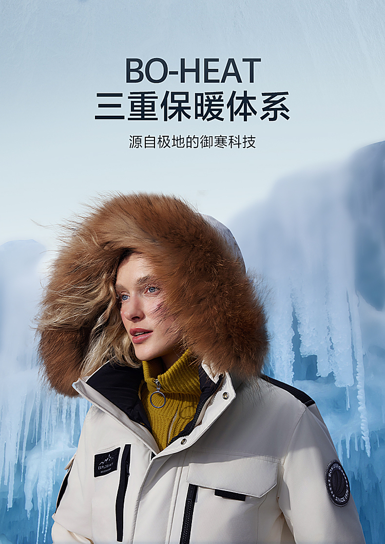 B30142317波司登2023冬季新款极寒貉子毛连帽情侣鹅绒外套羽绒服