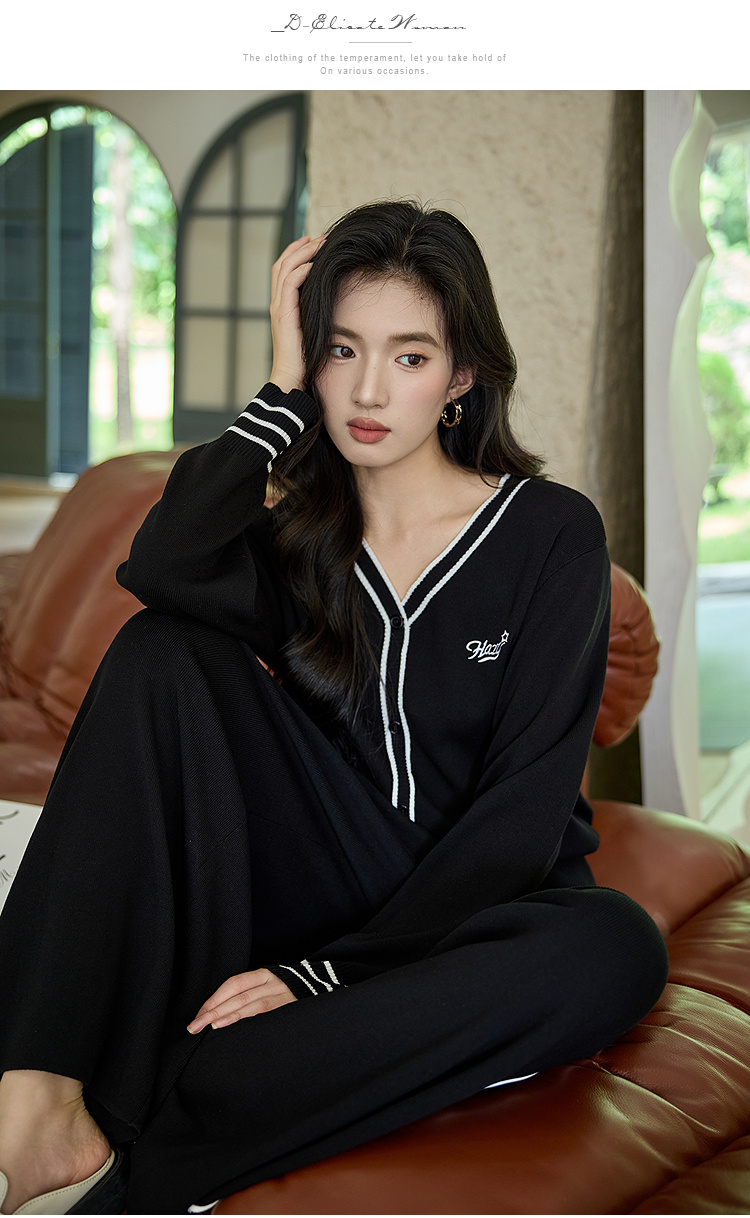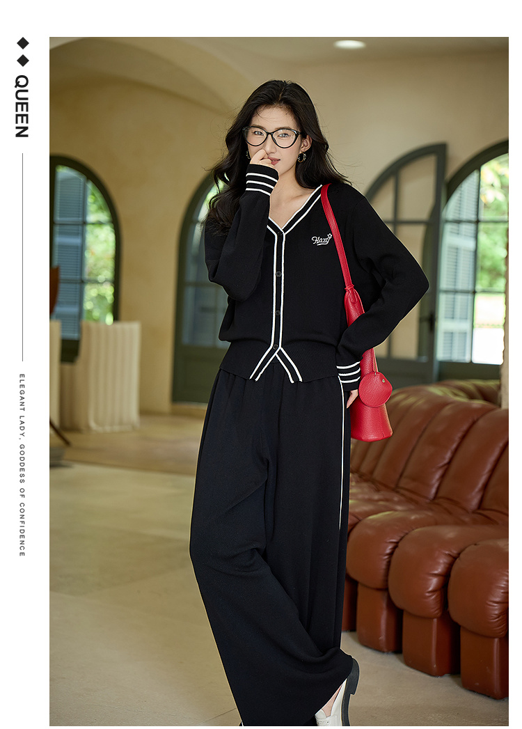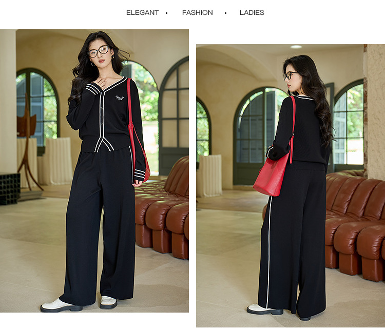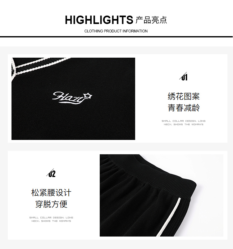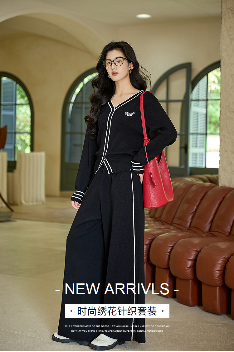 奢姿大码女装2025秋季字母绣花减龄两件套胖妹妹V领时尚针织套装9653991020AB