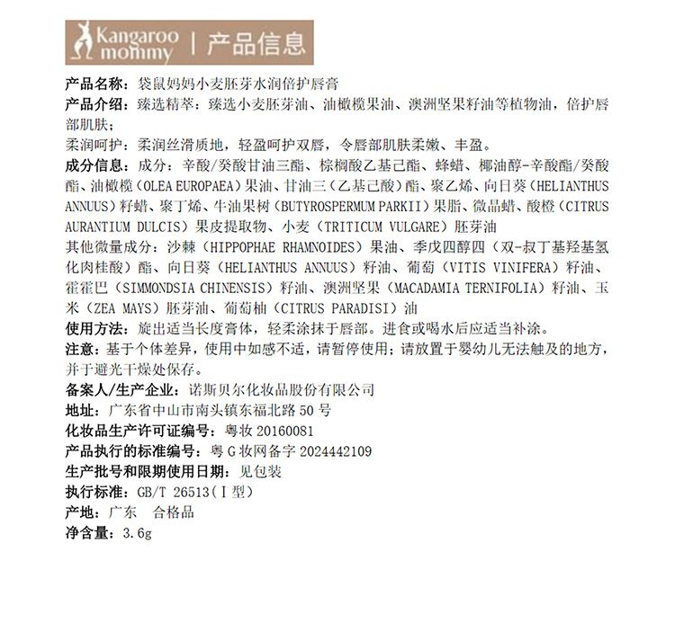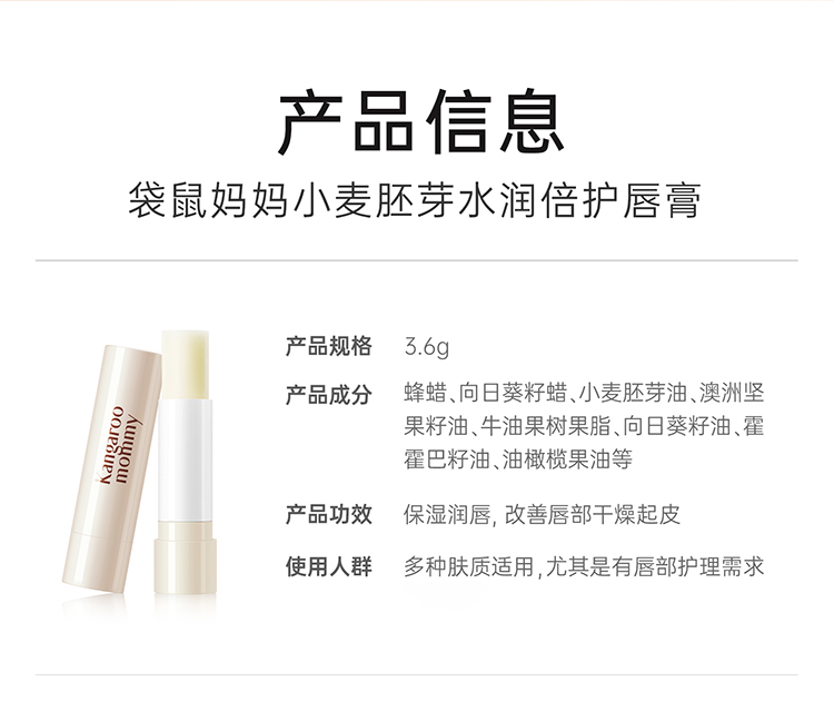 【水润唇膏】长效保湿 润护双唇改善干燥 小麦胚芽水润倍护润唇膏(3.6g)