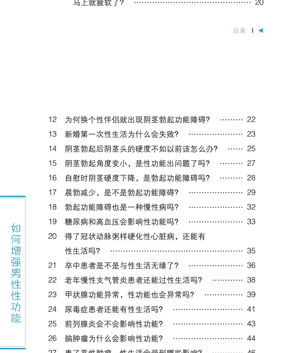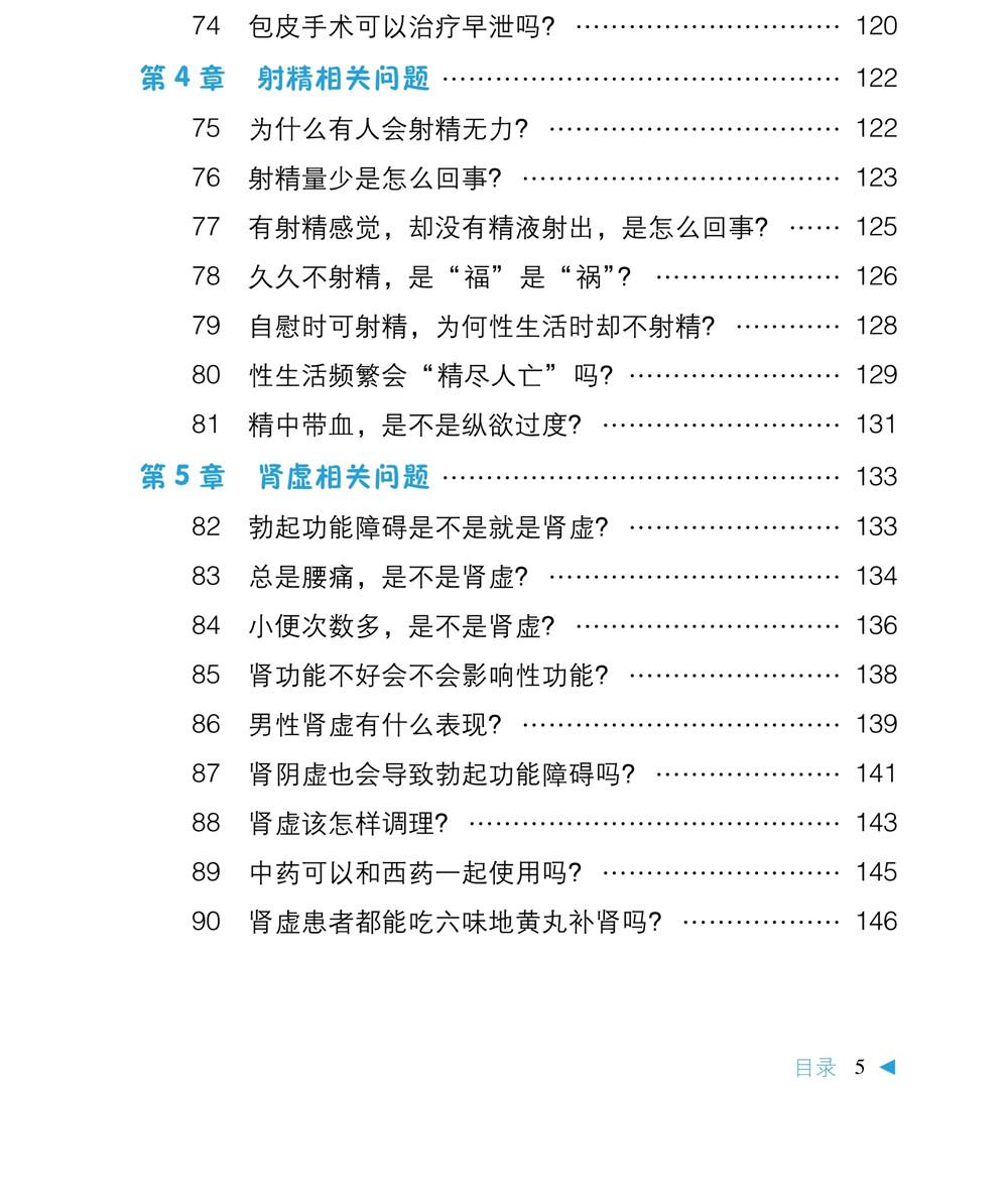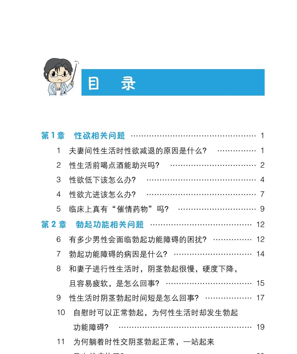 本书为《中华医学会男科学分会男性健康系列科普丛书》之一,由多位临床经验丰富的男科专家对临床上男性性欲、勃起功能、早泄、射精、肾虚、自慰与遗精及性生活方面的常见问题进行梳理,选取代表性的问题,结合笔者的临床经验,以问答的形式为读者提供科学的解答,编写视角新颖,科学性、权威性、实用性强,适合广大关心男性健康的读者阅读。