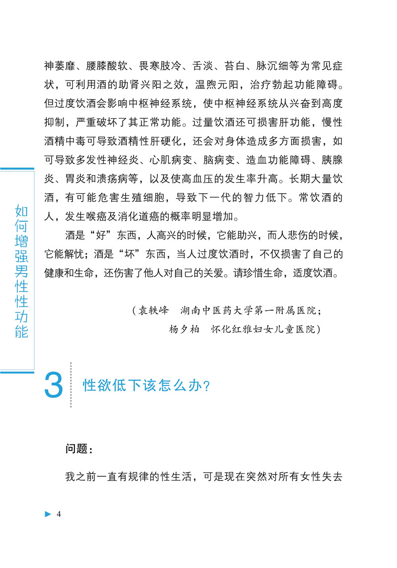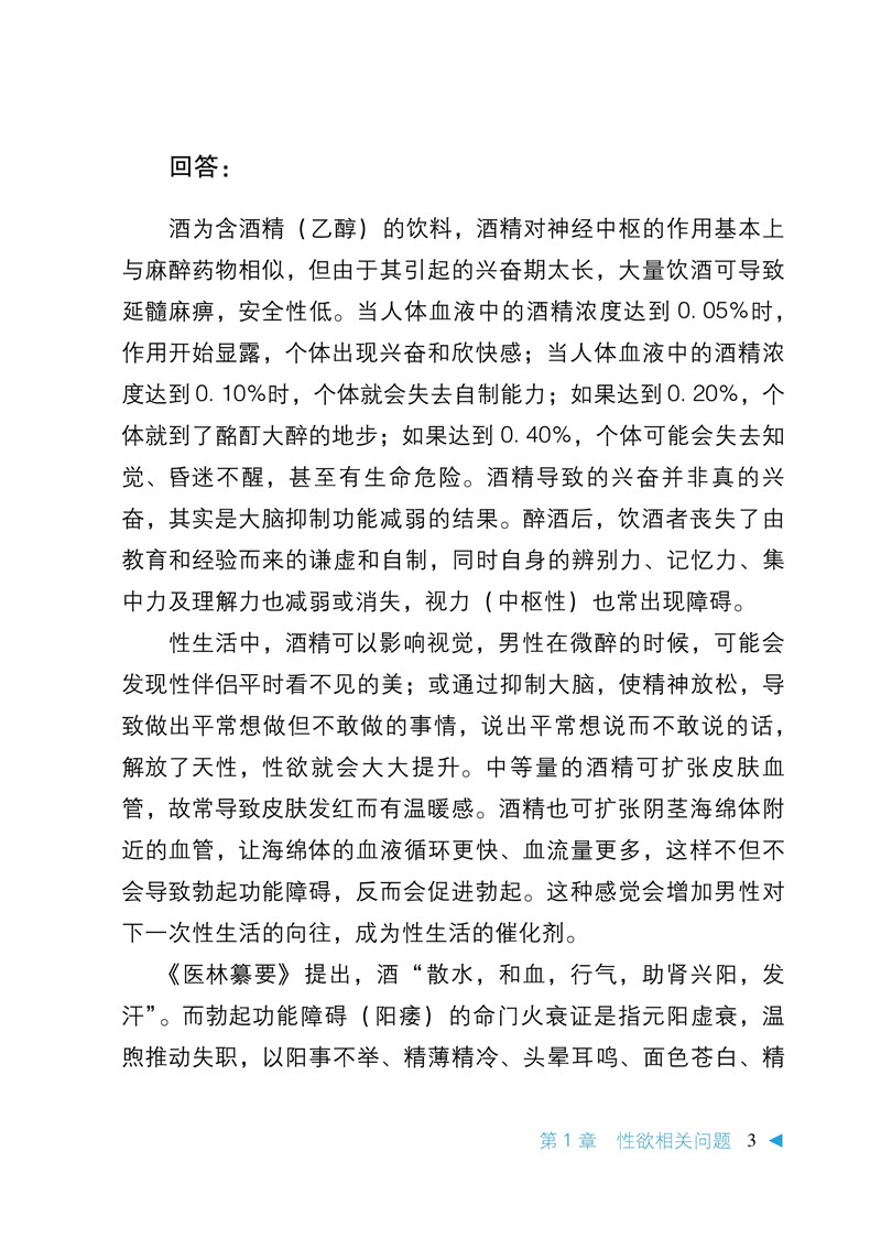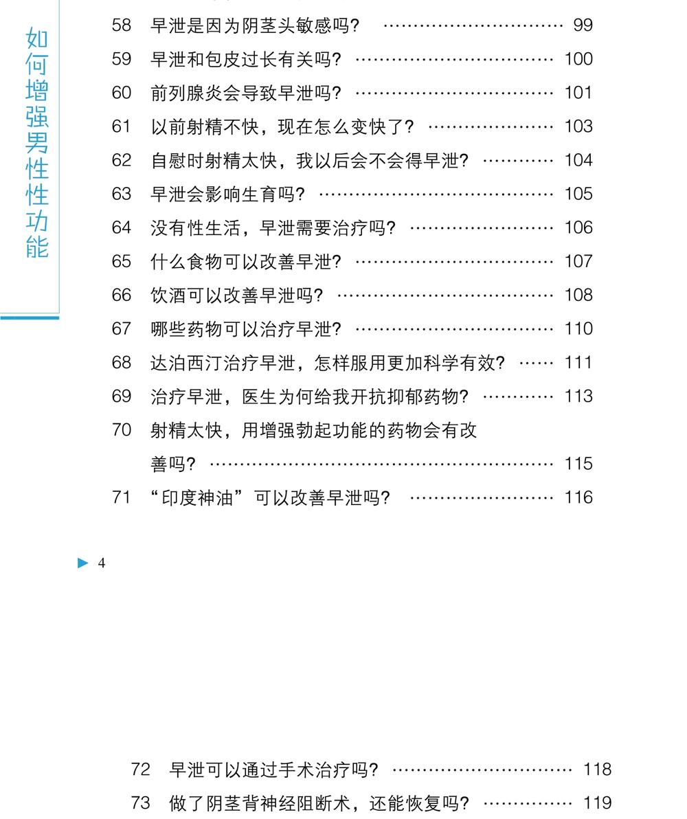 本书为《中华医学会男科学分会男性健康系列科普丛书》之一,由多位临床经验丰富的男科专家对临床上男性性欲、勃起功能、早泄、射精、肾虚、自慰与遗精及性生活方面的常见问题进行梳理,选取代表性的问题,结合笔者的临床经验,以问答的形式为读者提供科学的解答,编写视角新颖,科学性、权威性、实用性强,适合广大关心男性健康的读者阅读。