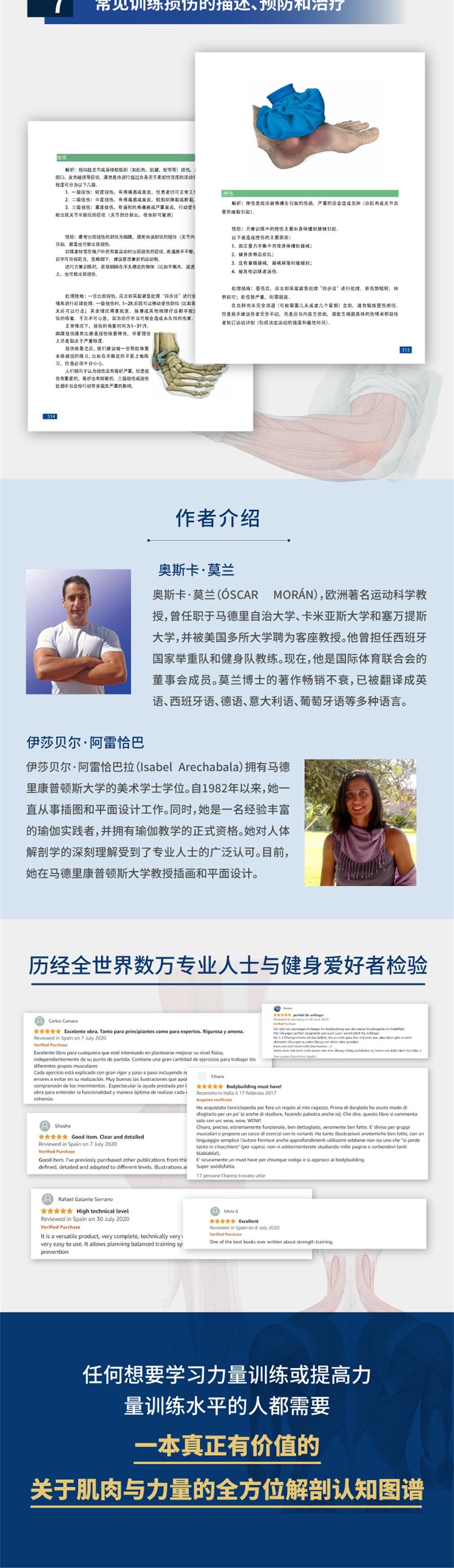 奥斯卡•莫兰(Óscar Morán)欧洲著名运动学教授,曾任职于西班牙马德里自治大学、卡米亚斯大主教大学和欧洲塞万提斯大学,并被美国多所大学聘为客座教授。曾担任西班牙国家举重队和健身队教练,现在是国际体育教育联盟的董事会成员。本书在西班牙出版后,常踞亚马逊同类书畅销榜名,已被翻译成英语、德语、意大利语、葡萄牙语等多种语言。伊莎贝尔•阿雷查瓦拉(Isabel Arechabala)拥有西班牙马德里康普顿斯大学的艺术学士学位。自1982年以来,她一直从事插画和平面设计工作。同时,她是一名经验丰富的瑜伽实践者,有瑜伽教学资格。她对人体解剖学的深刻理解得到了专业人士的广泛认可。目前,她在马德里康普顿斯大学教授插画和平面设计。
