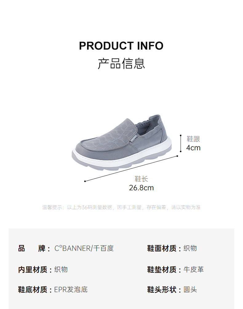 千百度男鞋厚底增高时尚休闲鞋轻便透气一脚蹬运动鞋A25160782