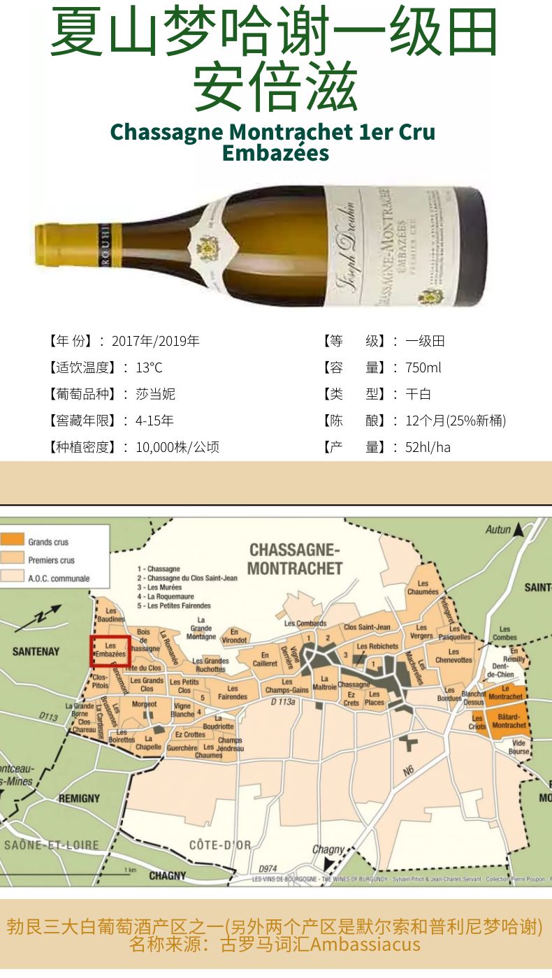 约瑟夫·杜鲁安Chassagne Montrachet 1er Cru Embazées夏山梦哈谢一级田安倍滋