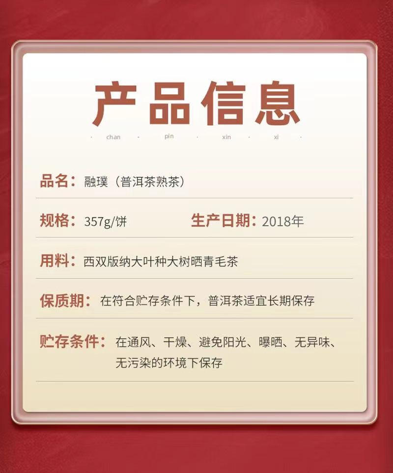 普洱熟茶 陈升号 2018年 融璞 357g/饼