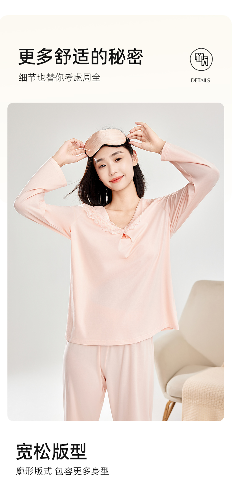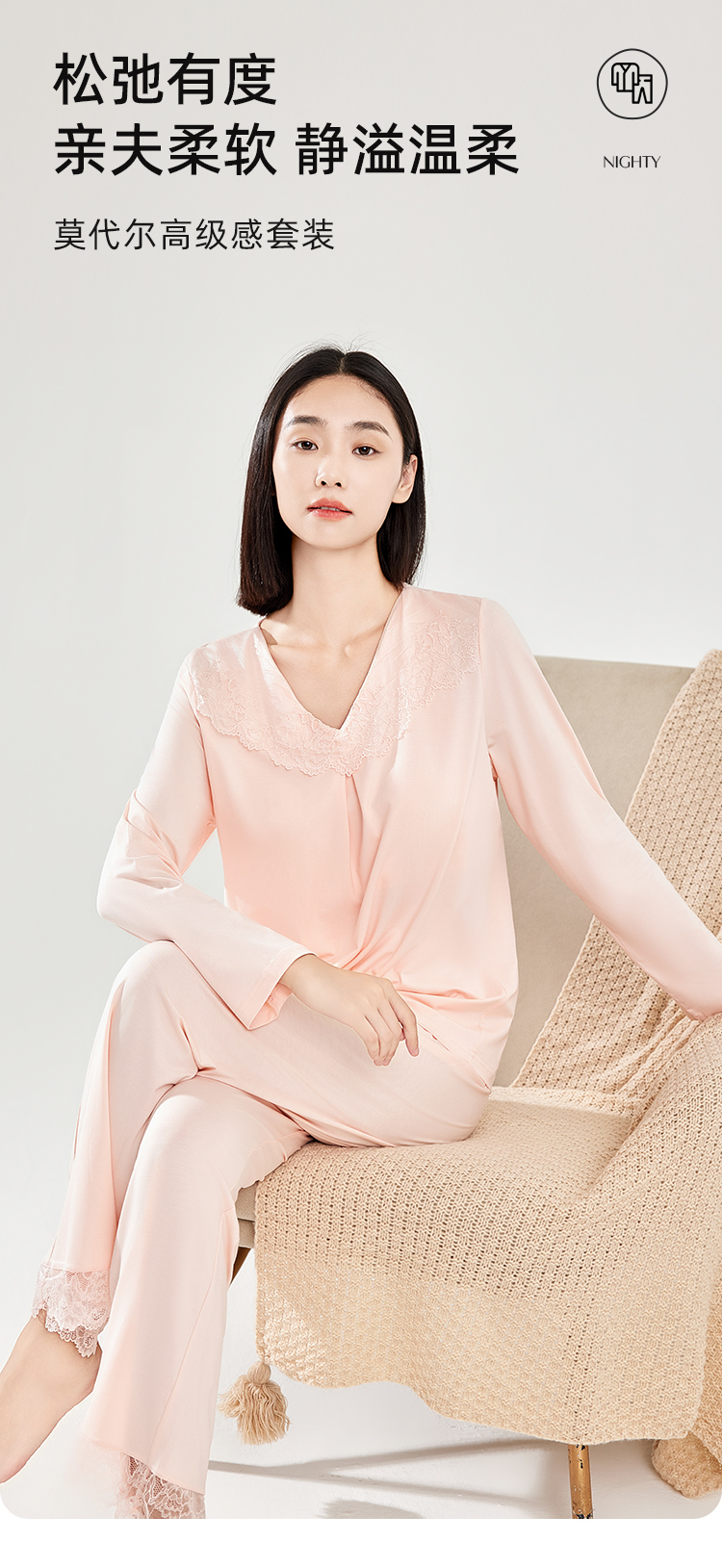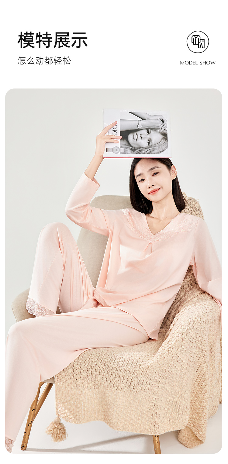 皇家丽美新款春秋家居服莫代尔棉舒适高级感长袖长裤睡衣套装JJT90004