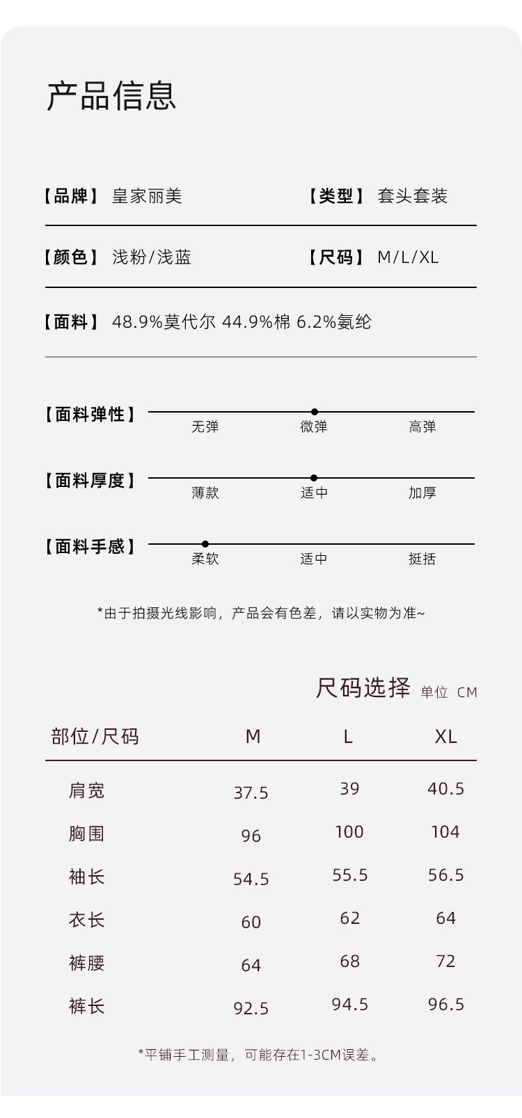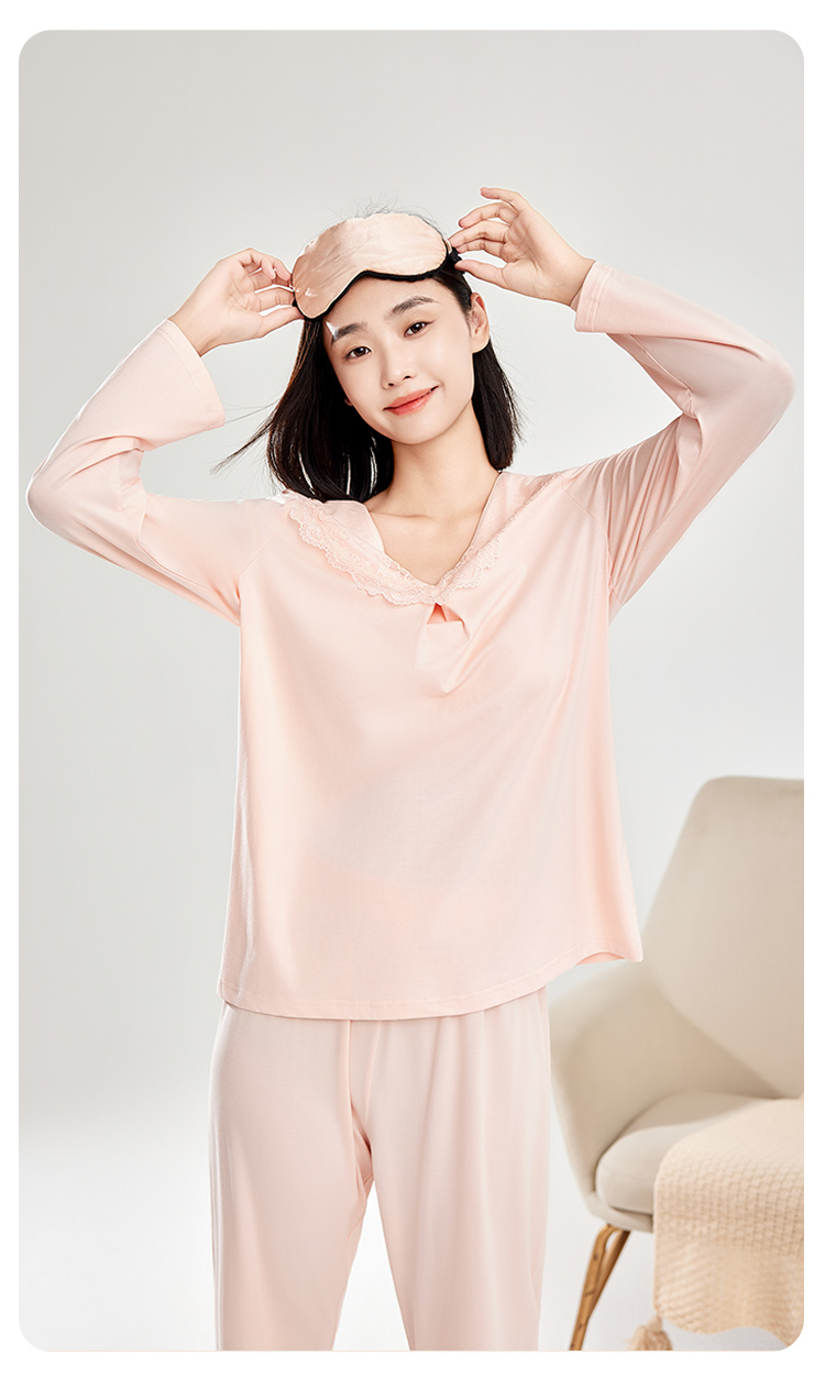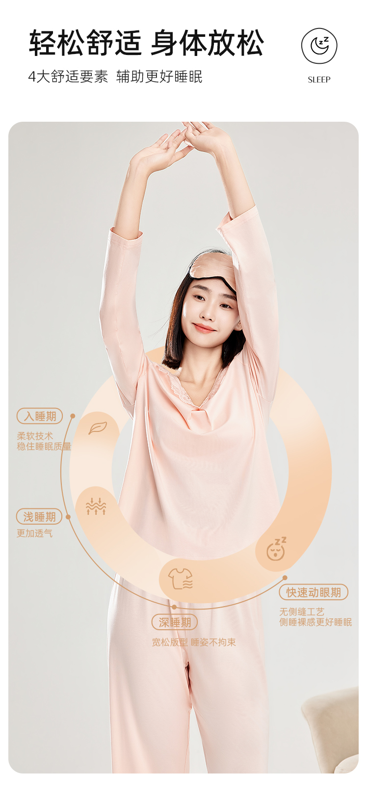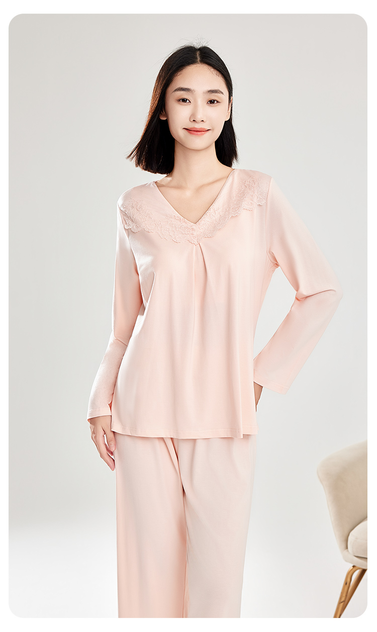 皇家丽美新款春秋家居服莫代尔棉舒适高级感长袖长裤睡衣套装JJT90004