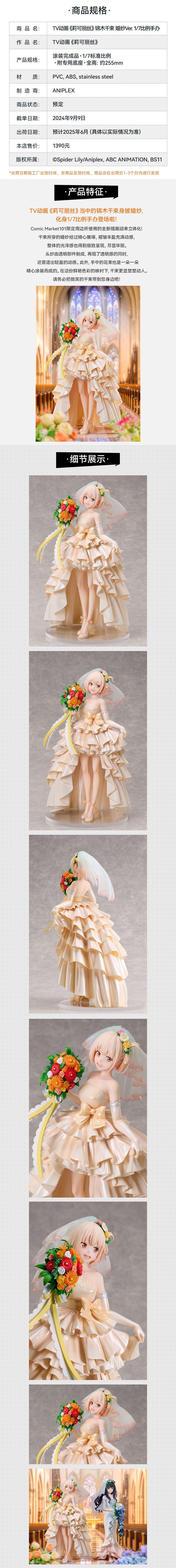 【GSC补款】TV动画《莉可丽丝》锦木千束 婚纱Ver. 1/7比例手办