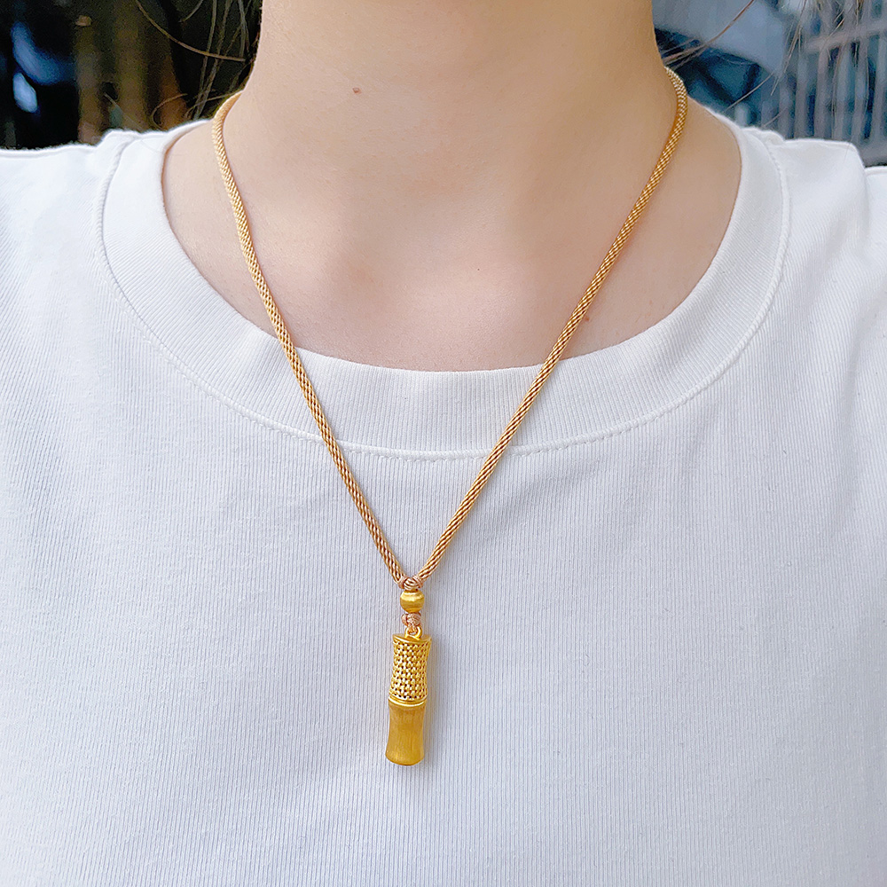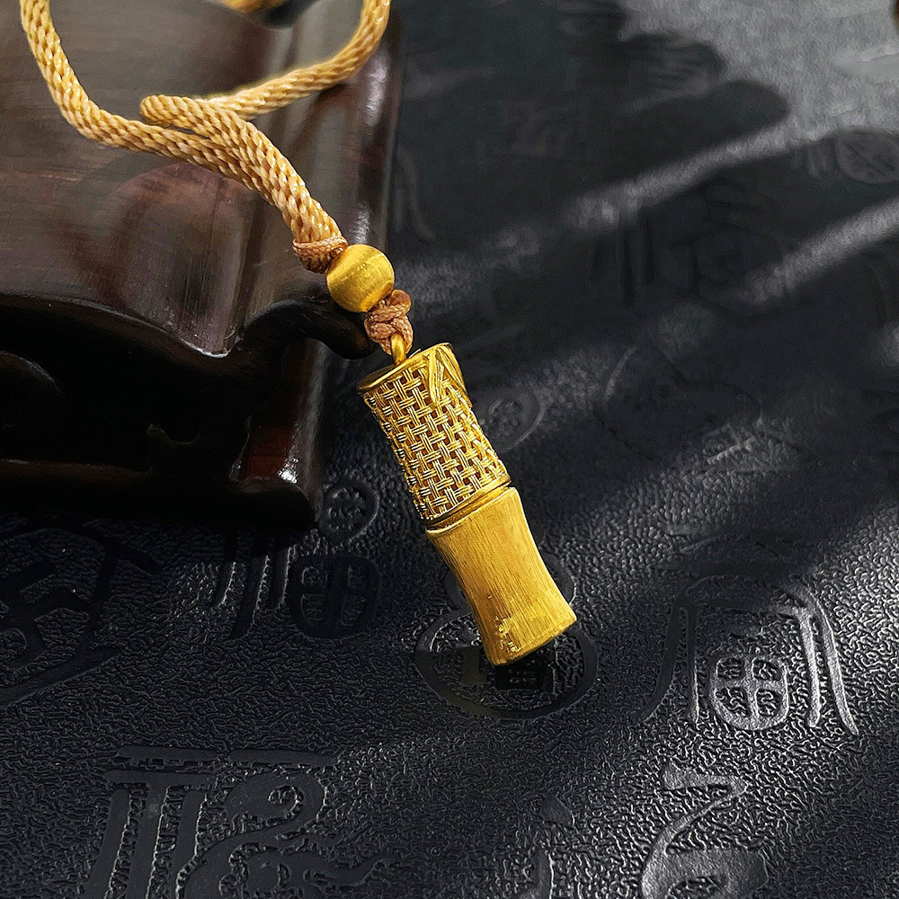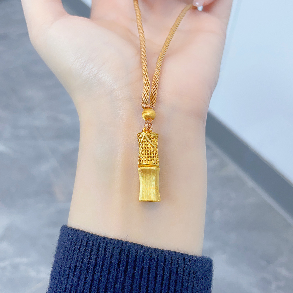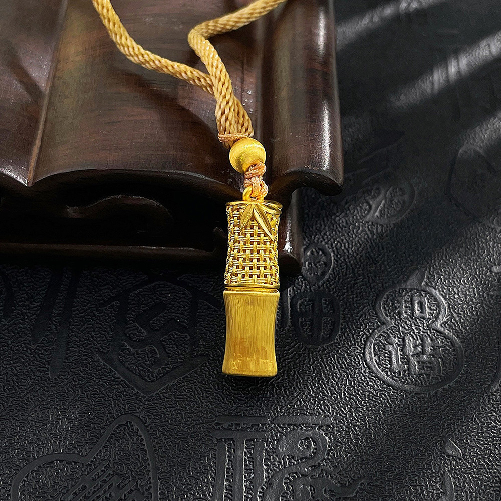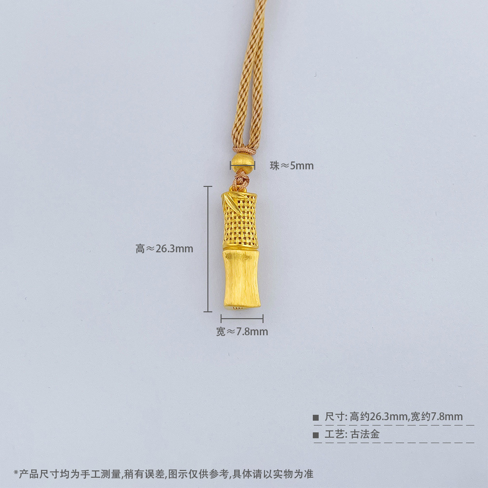 【限时克减150元】足金999 古法空心挂绳国潮传承冰丝金镂空冰丝丝绒金竹韵编织纹节吊坠(含珠子)(AUQGFDZ00138)(预售产品下单后不退款不退货不换货不补差价)