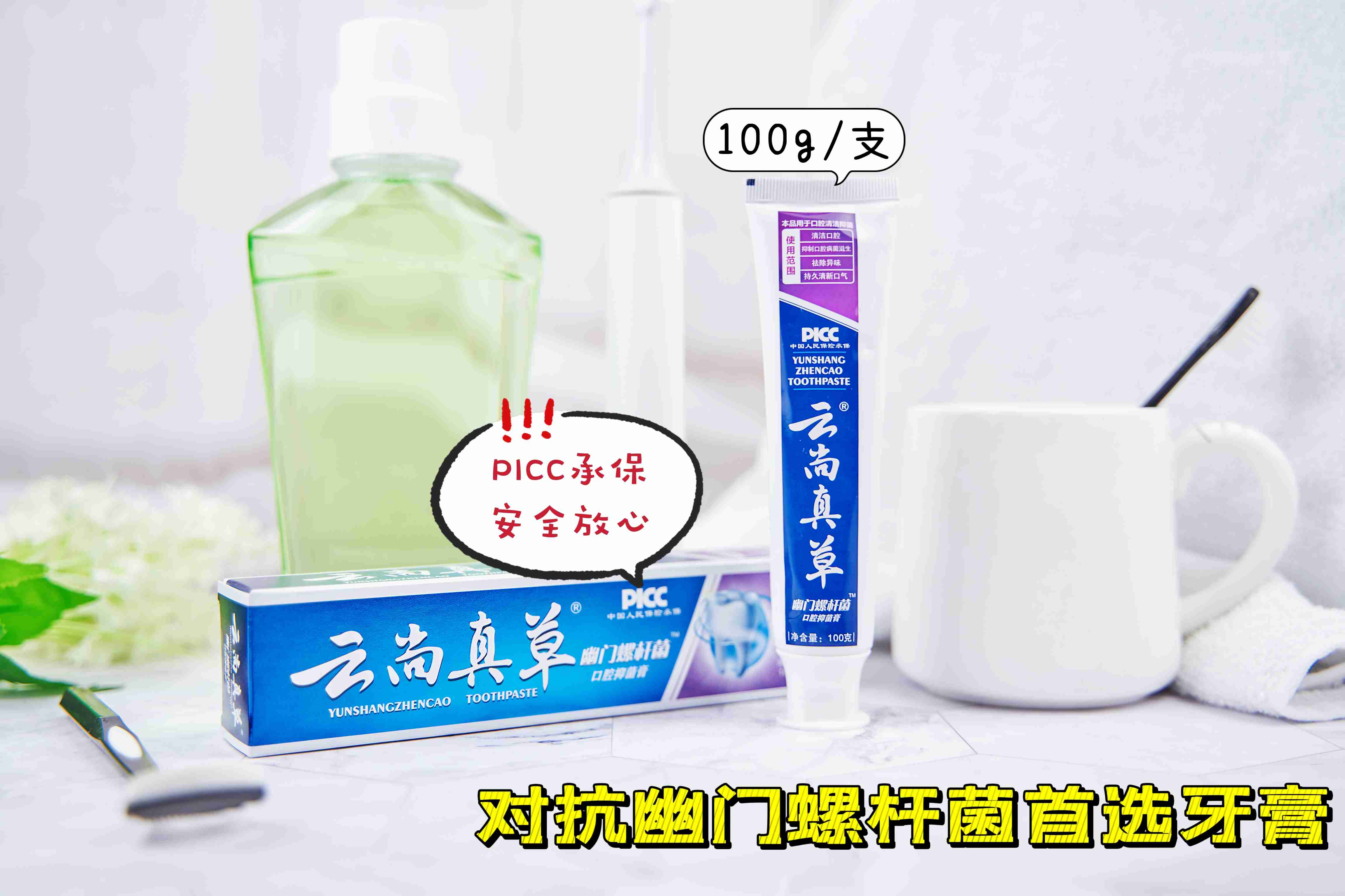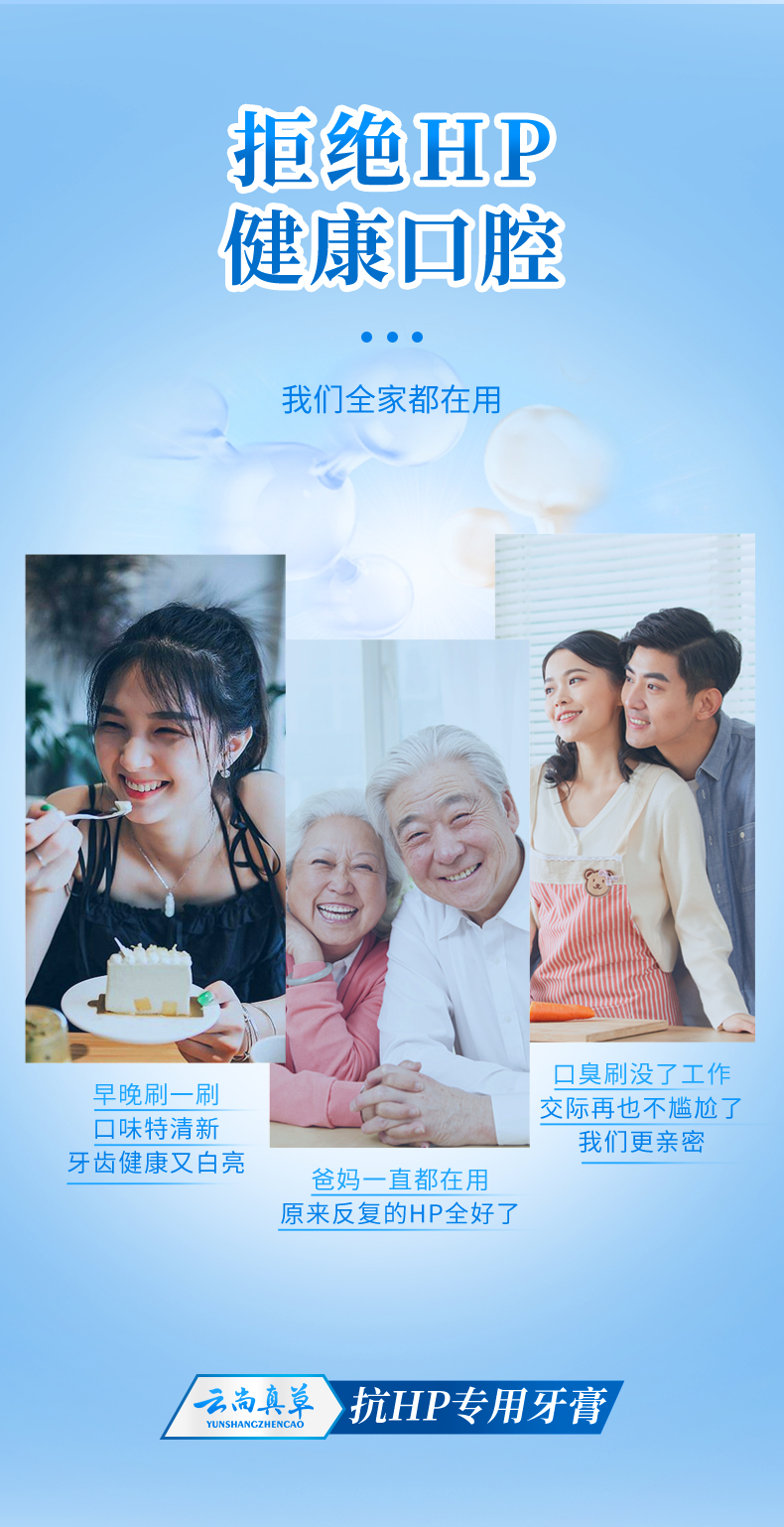 【抗幽门螺杆菌专用牙膏】洁牙护龈,清新口气云尚真草抗HP牙膏3支装