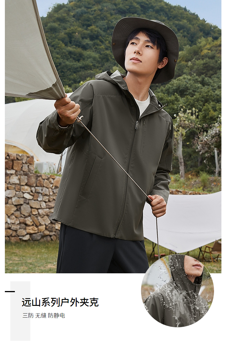 【三防】柒牌连帽夹克男2024秋季新款时尚潮流户外登山服休闲外套 127K70880