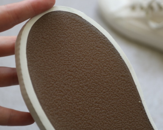 橡胶鞋底 可轻度弯曲 不板脚 先穿袜子踩几天 初期 请先准备好创口贴 哈~