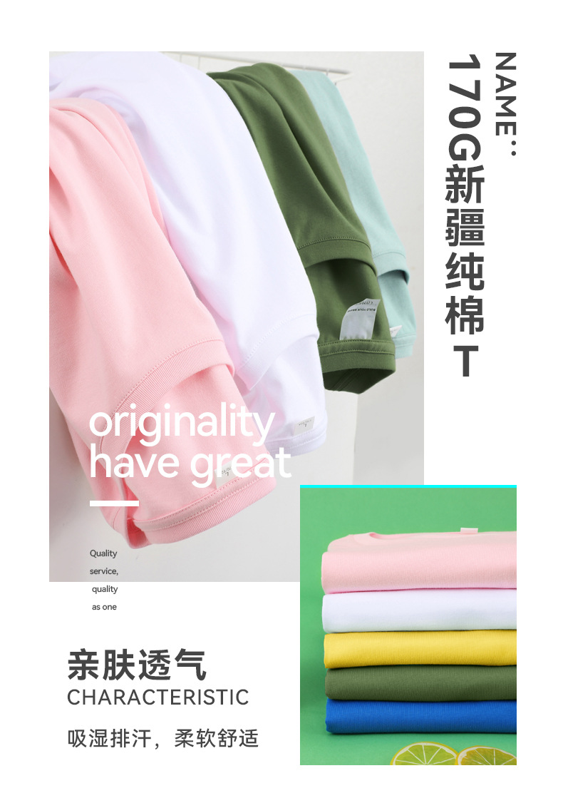 【新疆纯棉吸湿打底短袖】T恤定制大众体恤2023新款ins潮牌纯色圆领衫