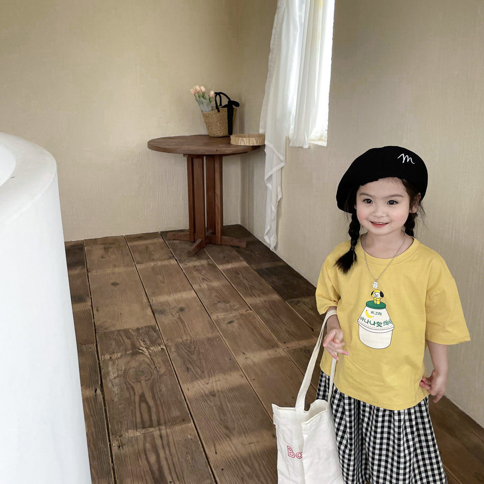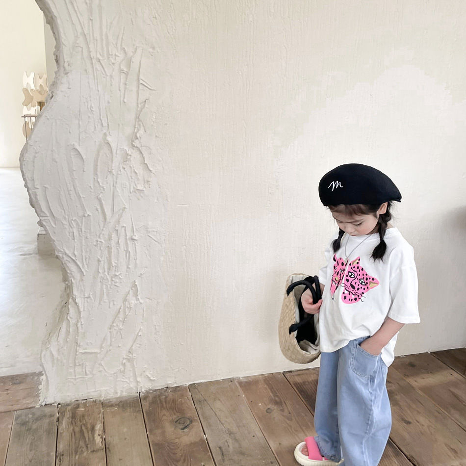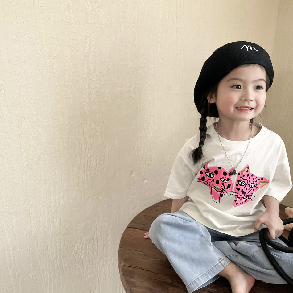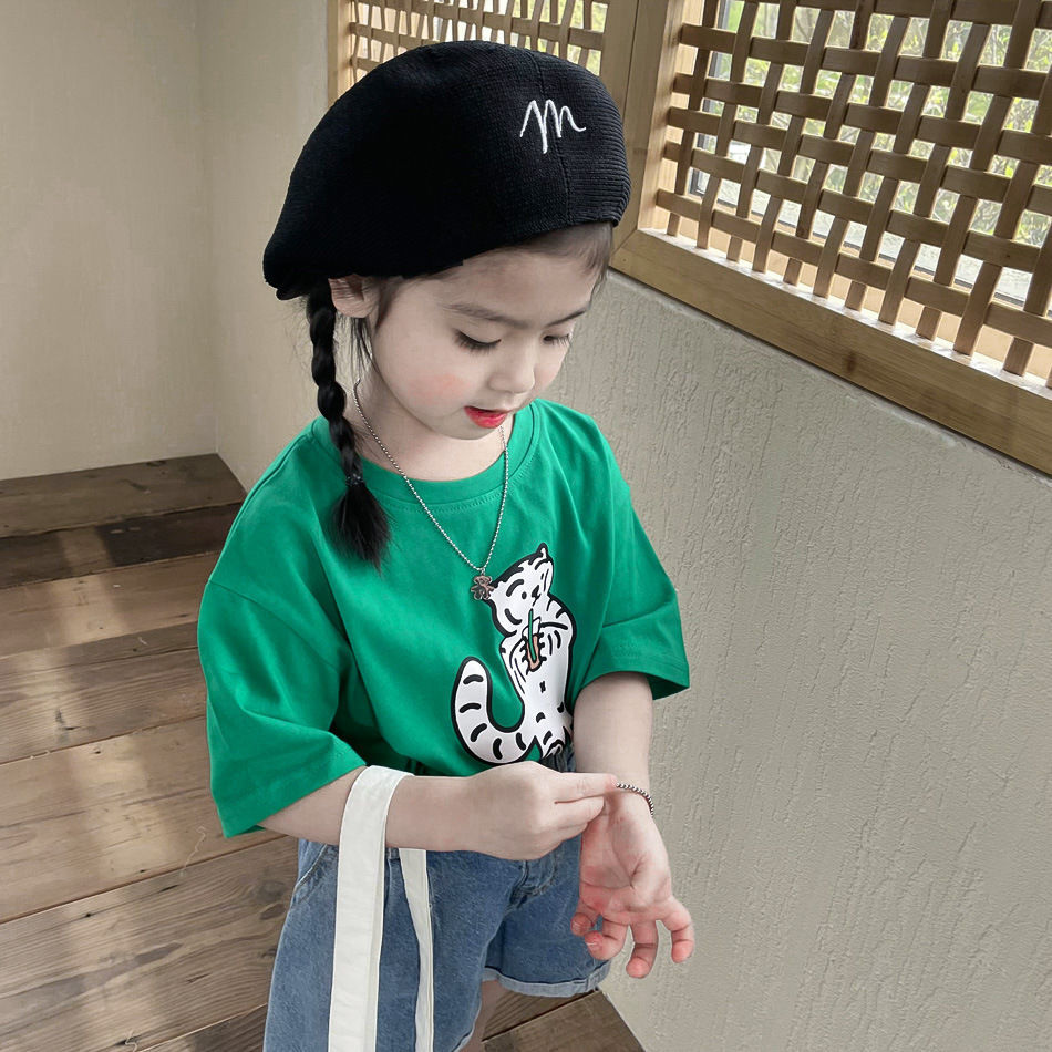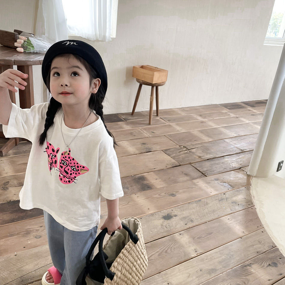 黛唯梵小童短袖t恤女童夏装2022新款洋气纯棉时尚韩版宽松宝宝儿童体恤