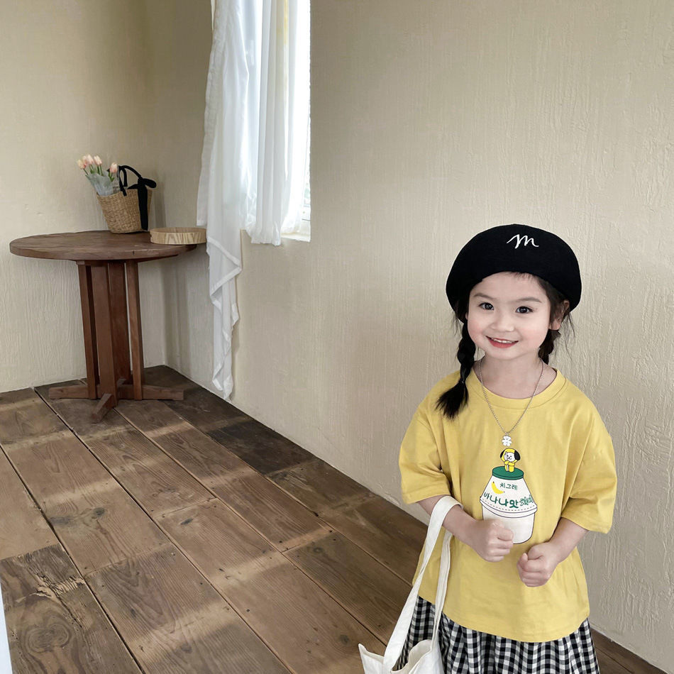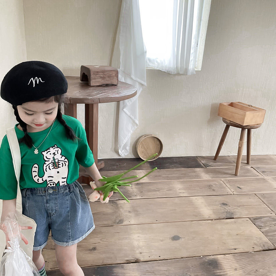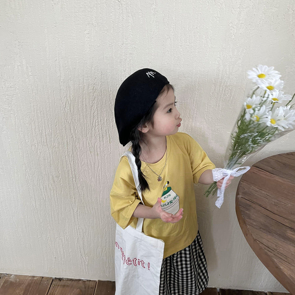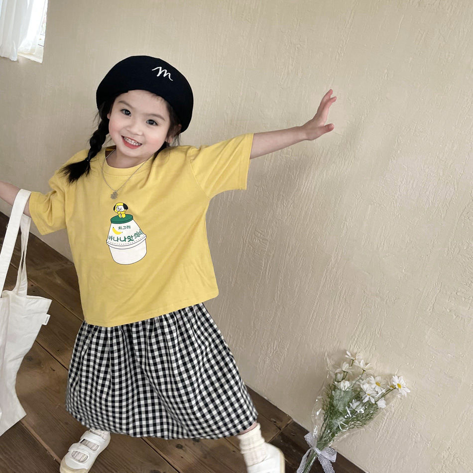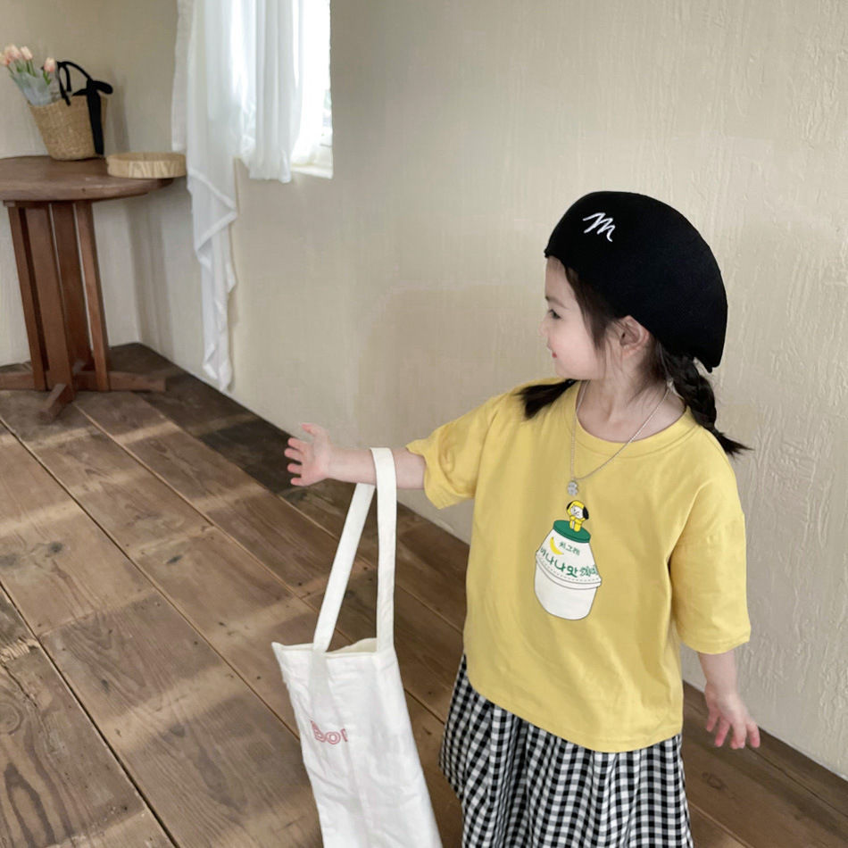 黛唯梵小童短袖t恤女童夏装2022新款洋气纯棉时尚韩版宽松宝宝儿童体恤