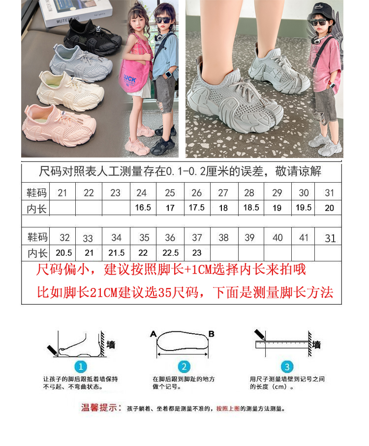 清仓款,超级合适,目前库存齐全,尺码偏小一码,拿不准的可以测量下孩子脚长,按照内长选更准确