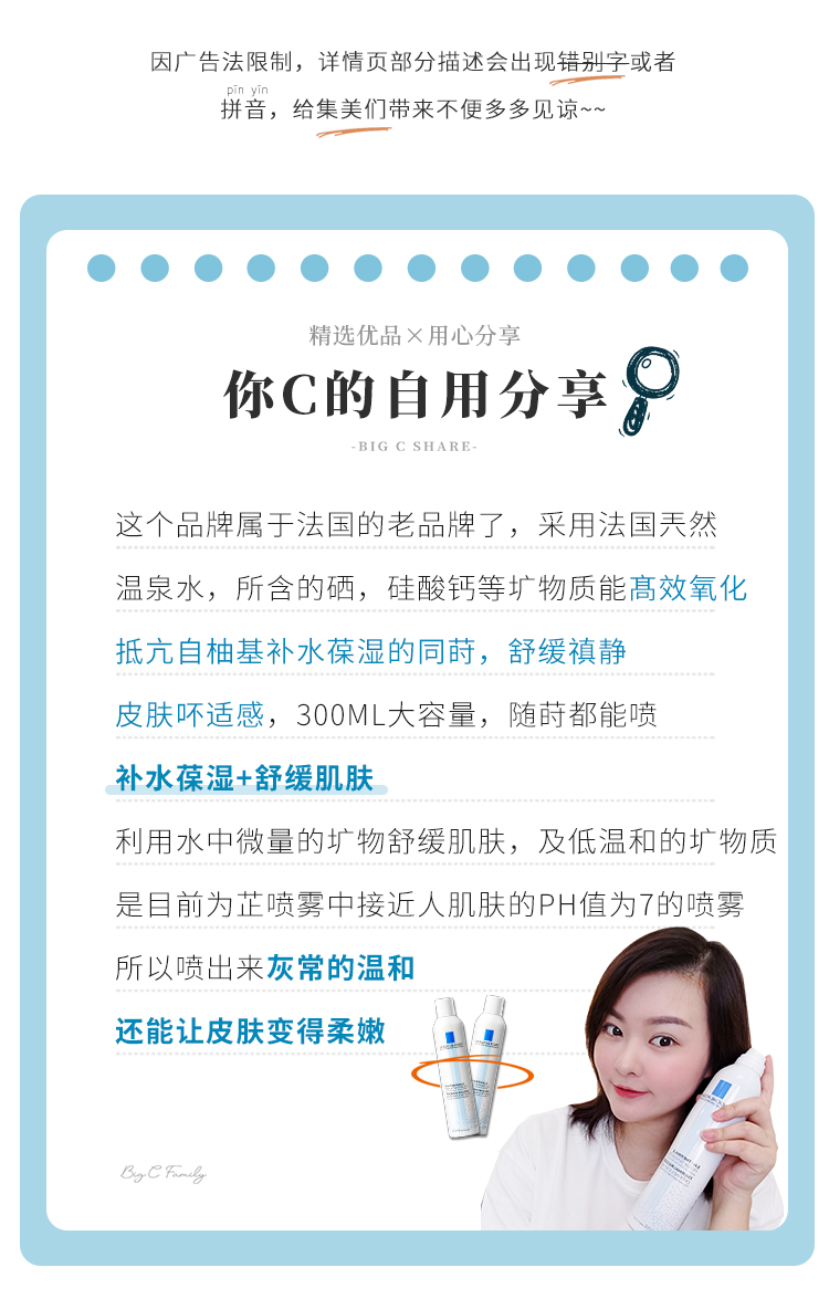 【YZ】法国理肤泉大喷舒缓调理喷雾补水保湿爽肤水修护镇定敏感肌300ml