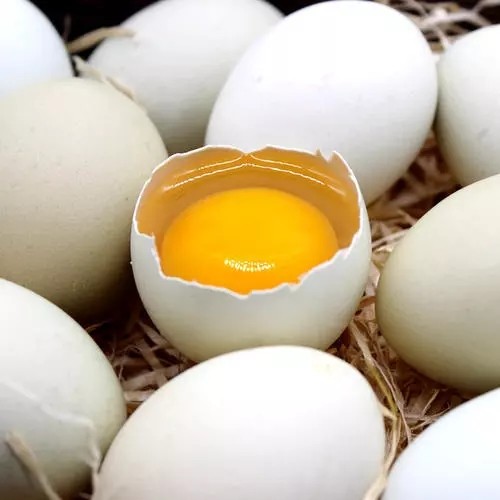 绿壳鸡蛋,平均每枚蛋重45克,其蛋绿色,属纯天然,蛋黄大,呈桔黄色,蛋清稠、蛋白浓厚、细嫩,极易被人体消化吸收,含有大量的卵磷脂、维生素A、B、E和微量元素碘、锌、硒,氨基酸的含量比普通鸡蛋高出5-10倍,蛋黄比草鸡蛋黄大8%,蛋黄色素可达罗氏13级左右(普通鸡蛋的蛋黄色素一般为罗氏4级-5级),属于高维生素、高微量元素、高氨基酸、低胆固醇、低脂肪的理想天然保健食品。