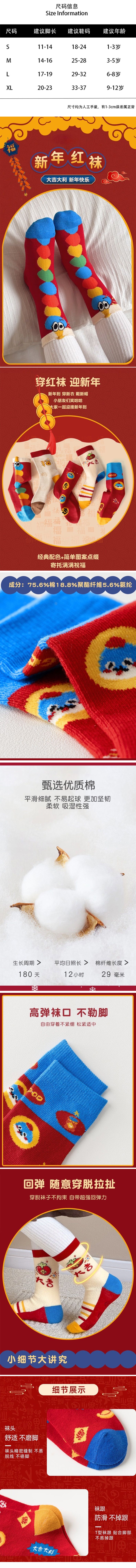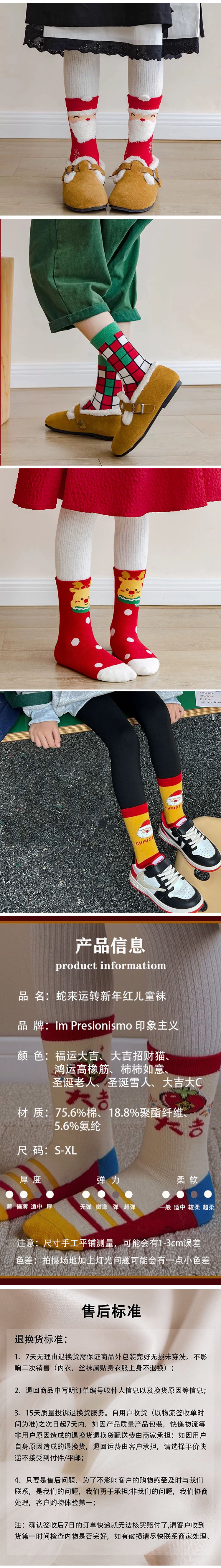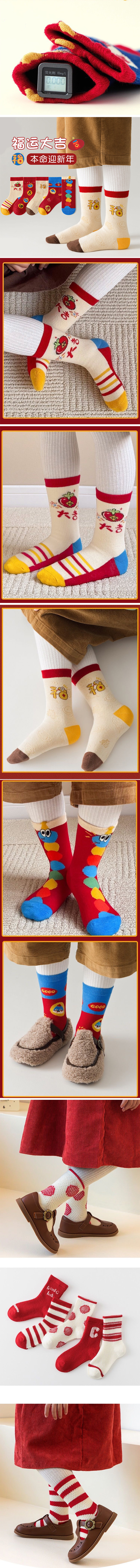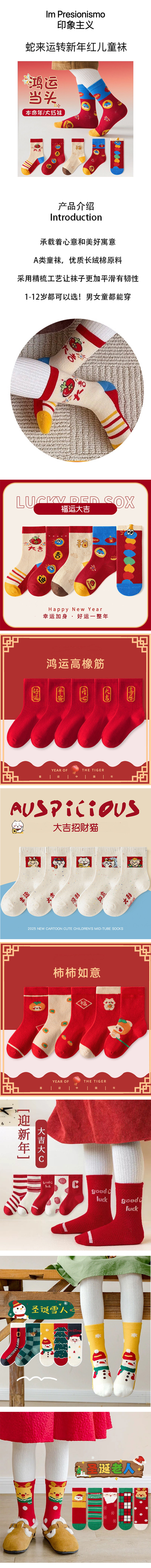 蛇来运转新年红儿童袜