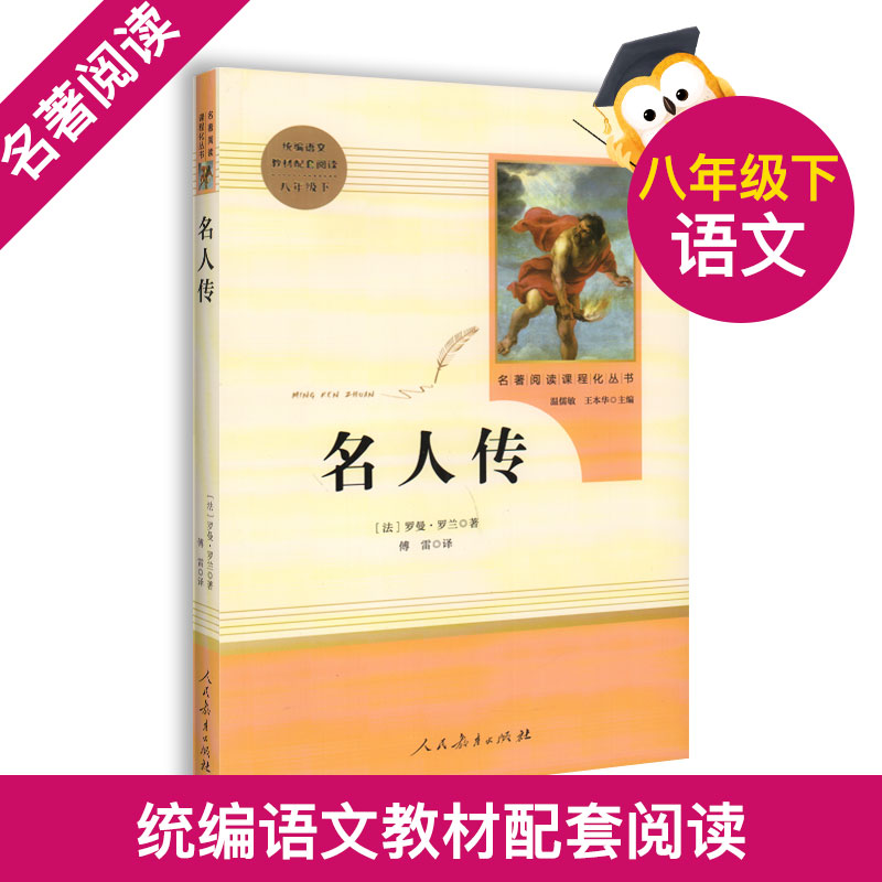 名人传 书正版初中版人民教育出版社罗曼罗兰原著完整版无删减 8年级/八年级下册部编版文学书籍 初中生新编语文教材配套阅读