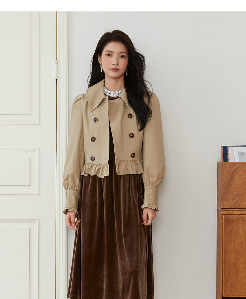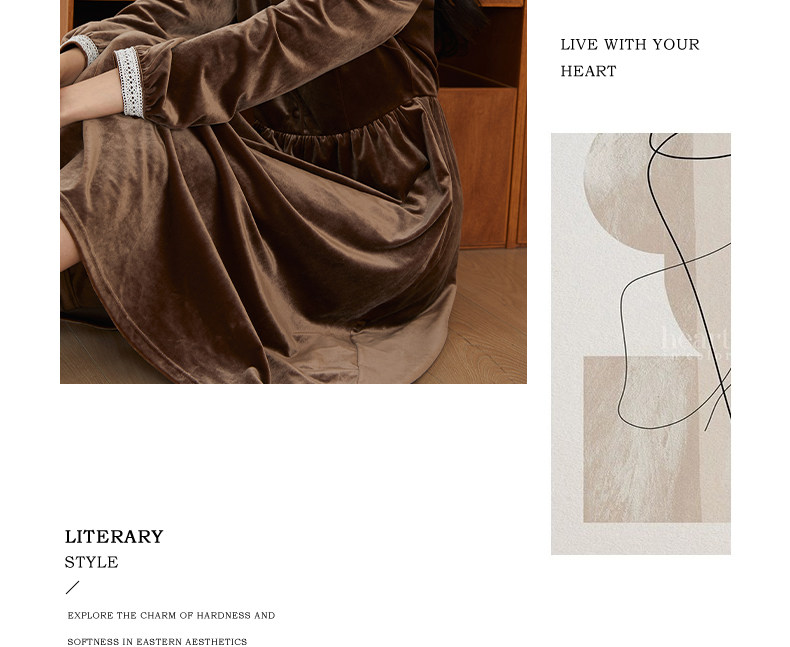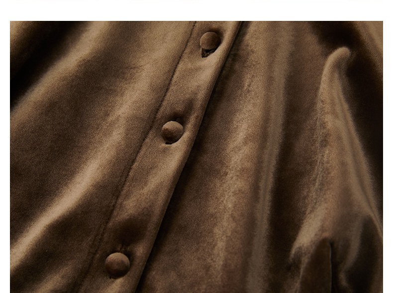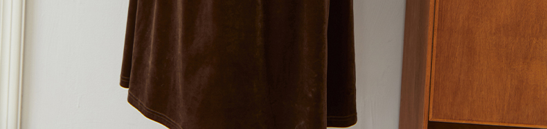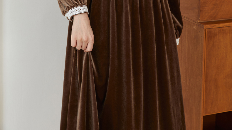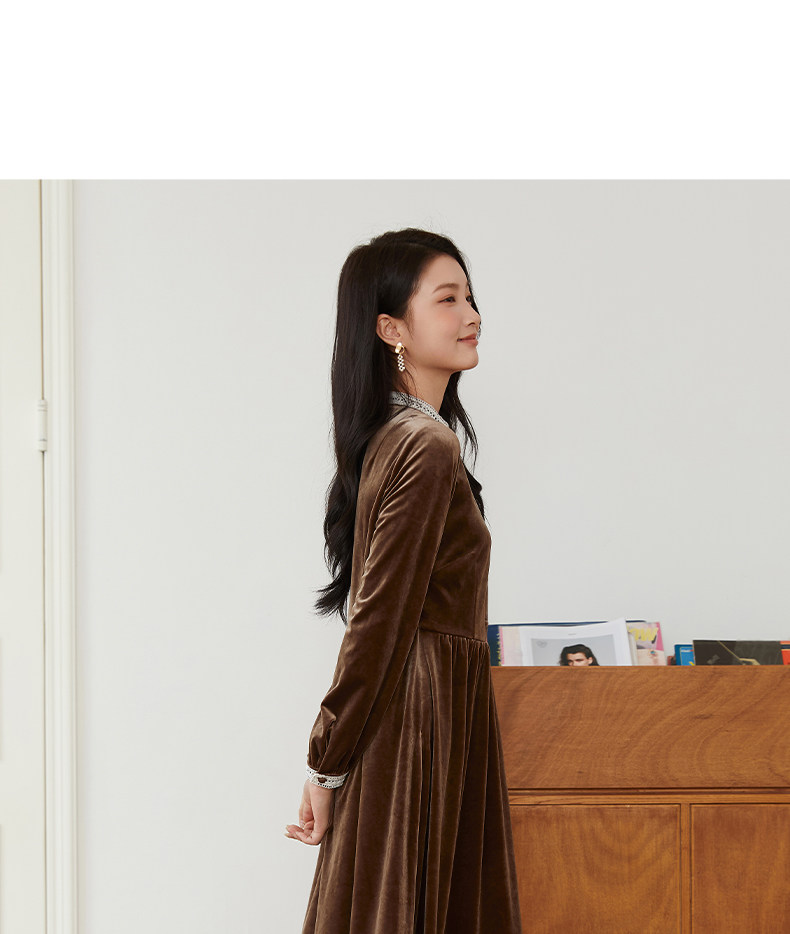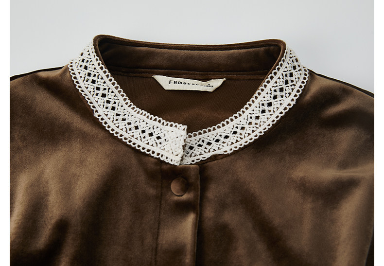 Famecoco范可儿优雅复古花边立领丝绒裙收腰连衣裙FAB6FA007