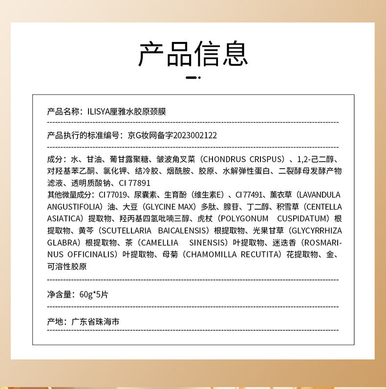 【爆款超低价预售 急单慎拍】水胶原颈膜 300g 5片