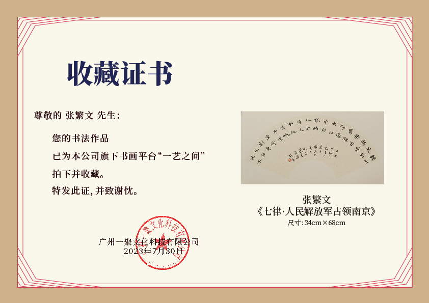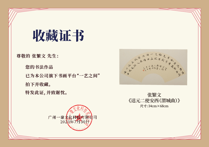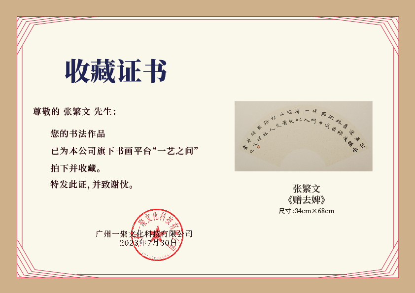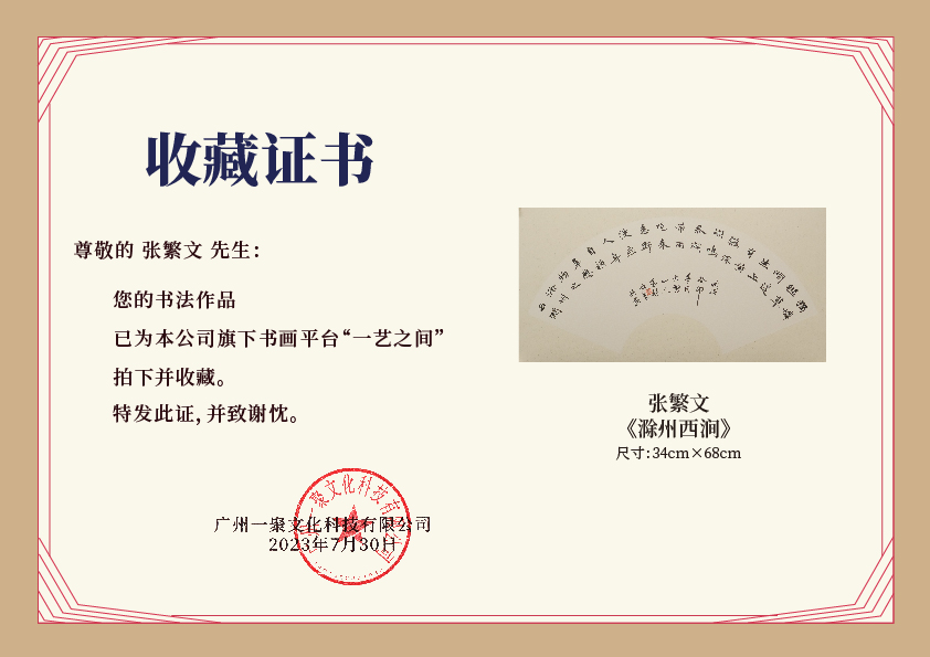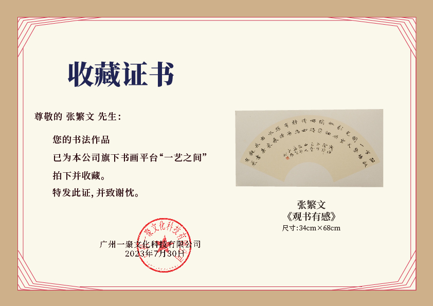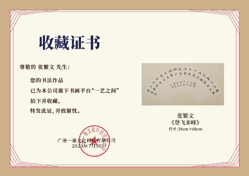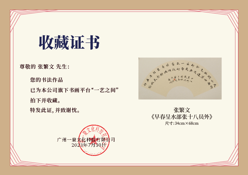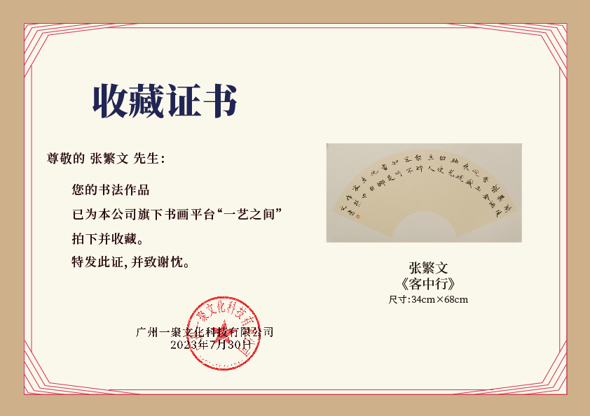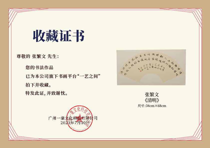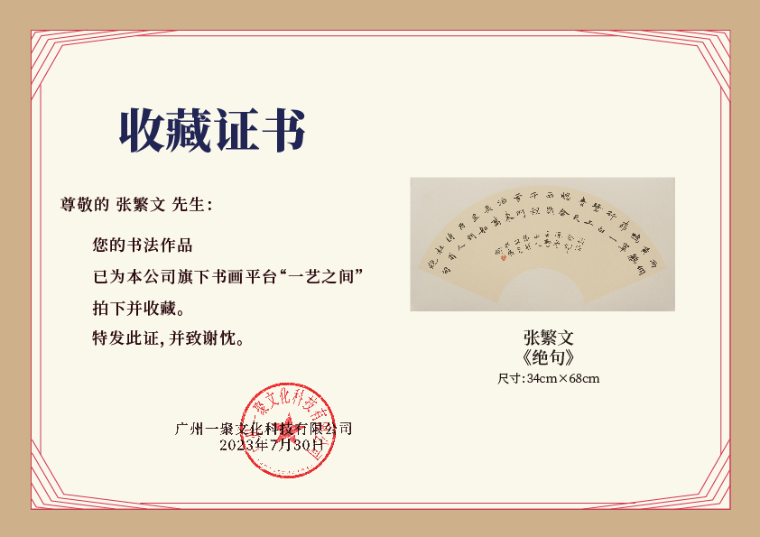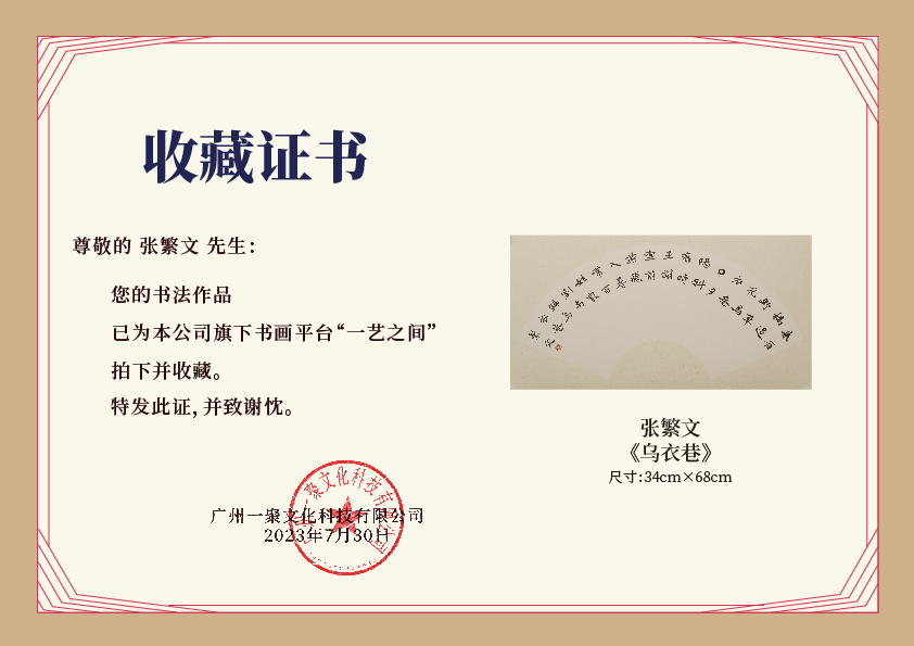 注意:下方收藏证书仅为微信视频号官方要求示意在“一艺之间”下单销售产品均为老师本人授权正版,并非随单赠送,敬请理解。
