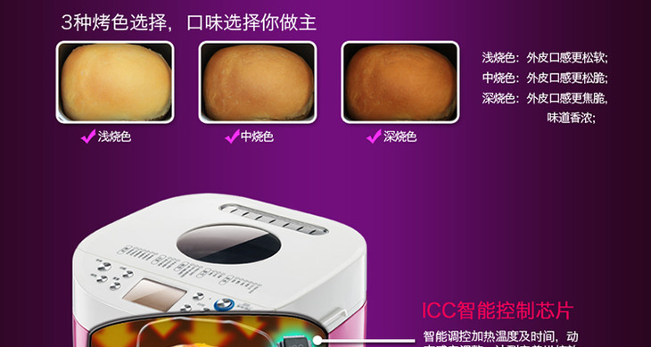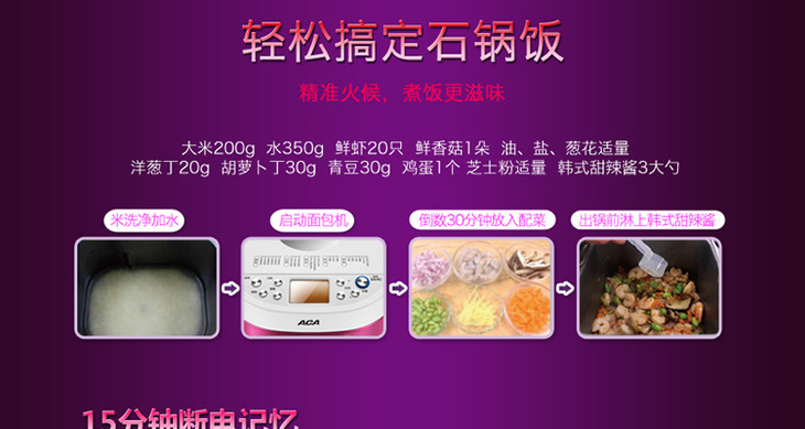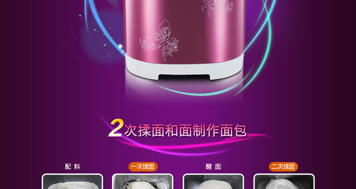 北美电器(ACA) 面包机 家用多功能和面机 AB-K20RC 粉红色