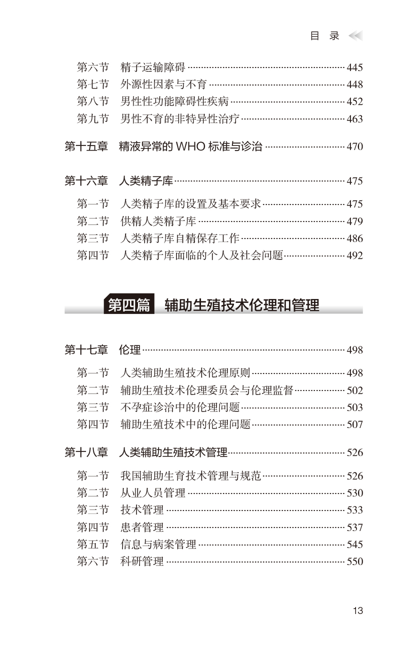 2.本书将面对低年资生殖医生,本书共分辅助生殖技术临床、辅助生殖技术实验室、辅助生殖技术男科、辅助生殖技术伦理和管理四篇十八章,内容丰富,文字简明扼要、重点突出,将面对低年资生殖医生,条理清晰地介绍女性生殖生理、不育症诊治、辅助生殖临床技术、并发症的预防与诊治,针对性介绍如PCOS、子宫内膜异位症、子宫腺肌病等常见疾病的诊断途径、治疗方法;女性不孕的手术诊疗、不孕症的辅助生殖技术治疗、特殊疾病的辅助生殖技术治疗、不孕症的心理与护理、实验室的各项操作技术、男性不育的检查和诊断、精液异常的WHO标准与诊治、人类辅助生殖技术管理等。文后附录 列举了常见生殖内分泌实验室检查指标由常规单位换算成国际单位的换算系数、手术记录,以及知情同意书等,可读性与实用性兼备。
