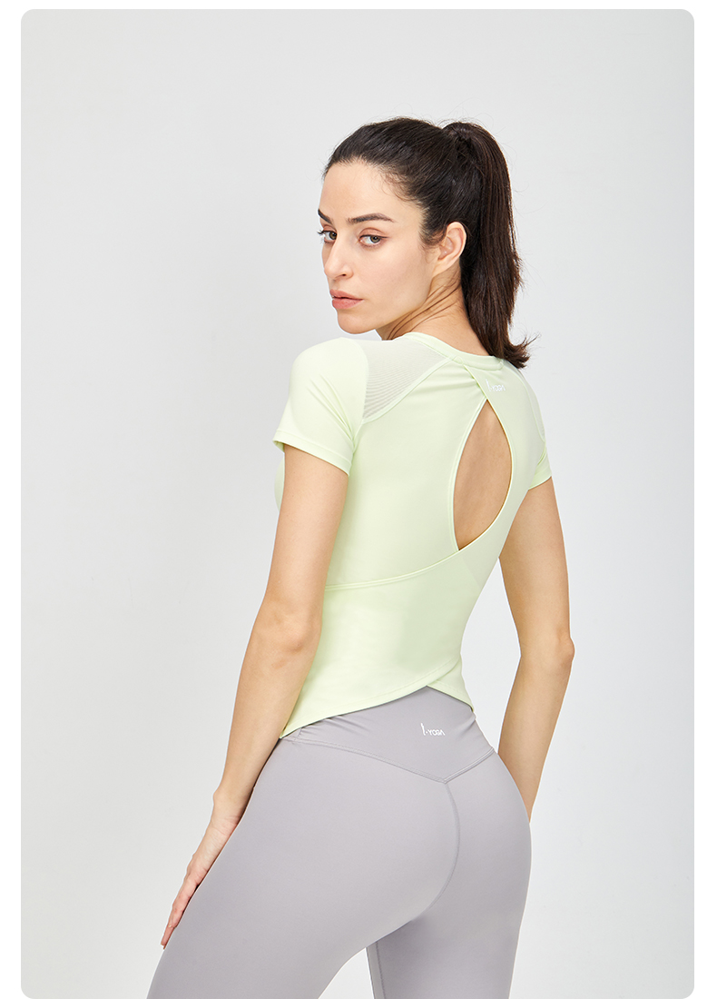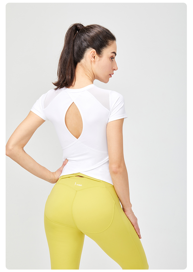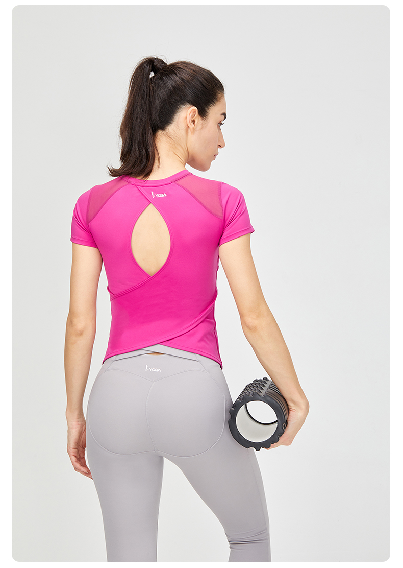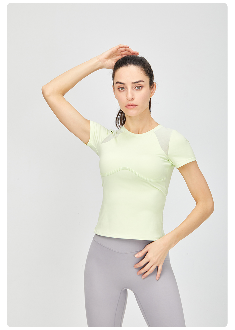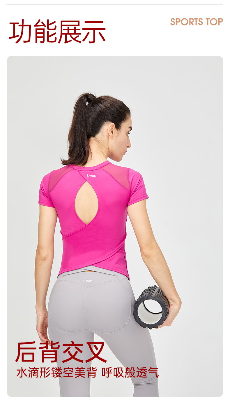 IYOGA 艾瑜嘉 瑜伽服带胸垫女夏跑步普拉提专业户外健身上衣高级感运动短袖t恤T050