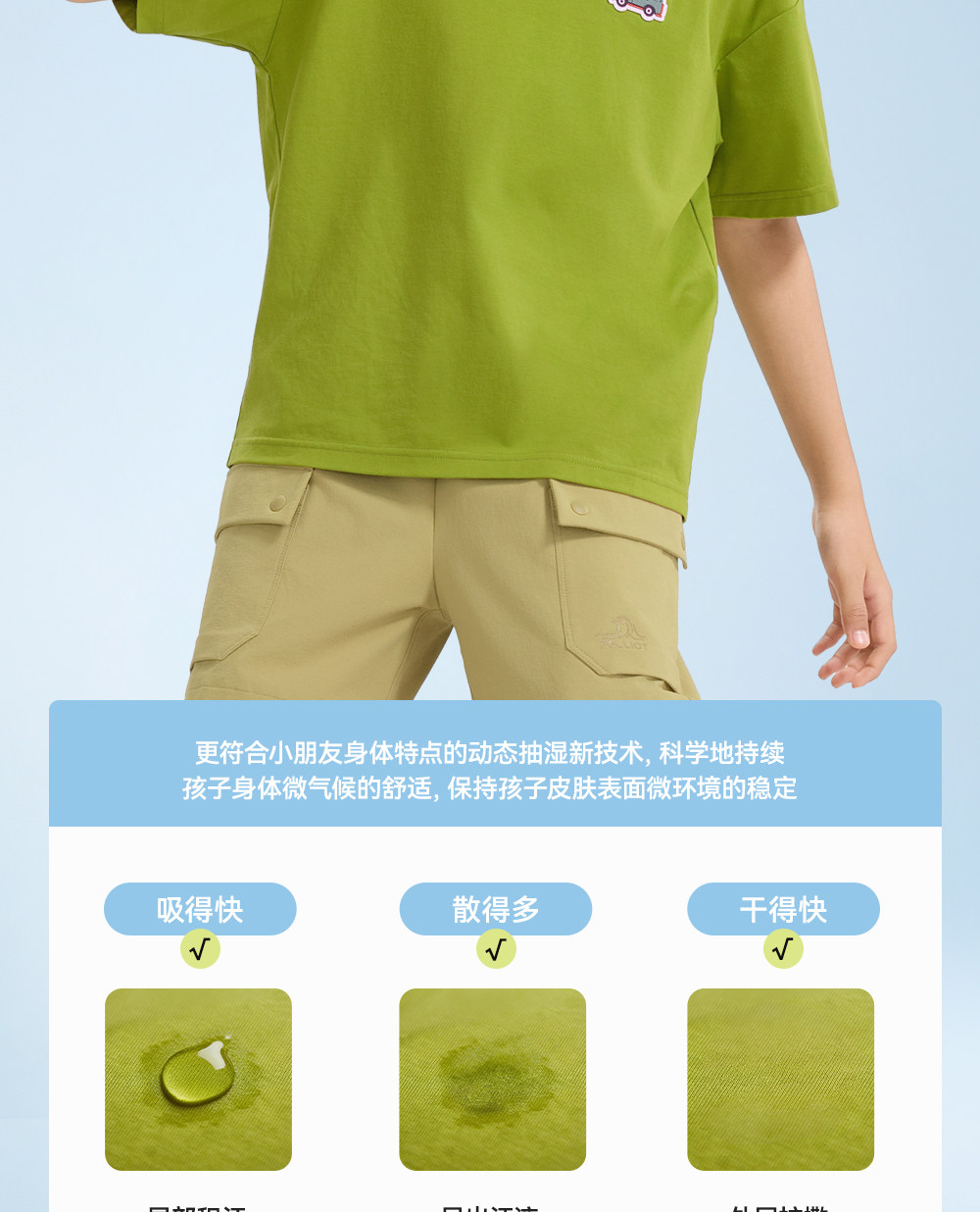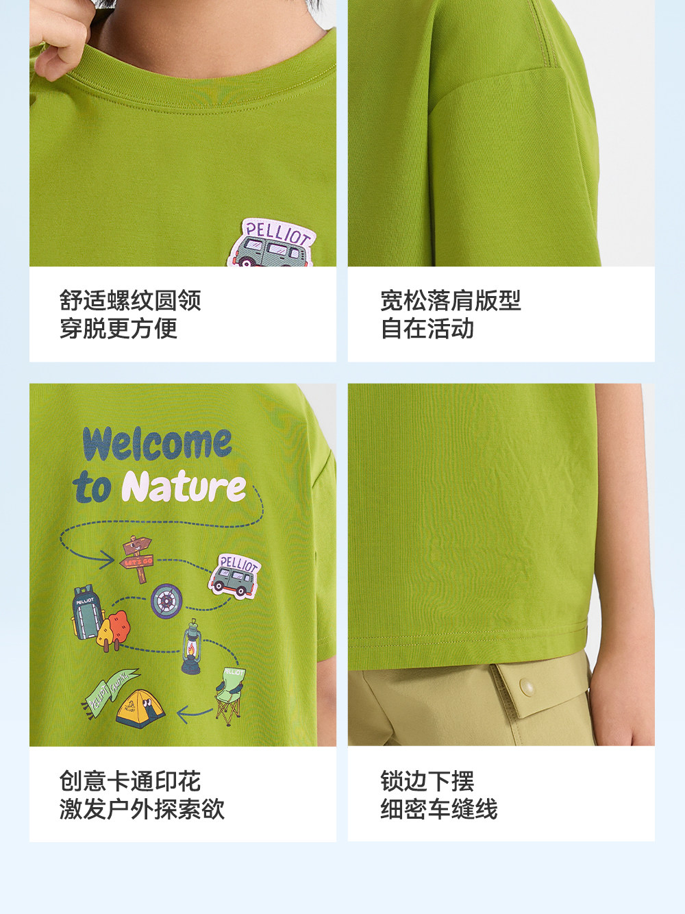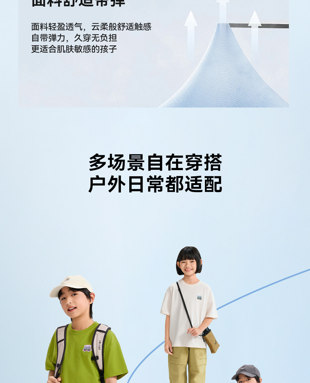 伯希和户外速干T恤儿童春季26新款凉感防晒短袖抑菌吸湿运动上衣