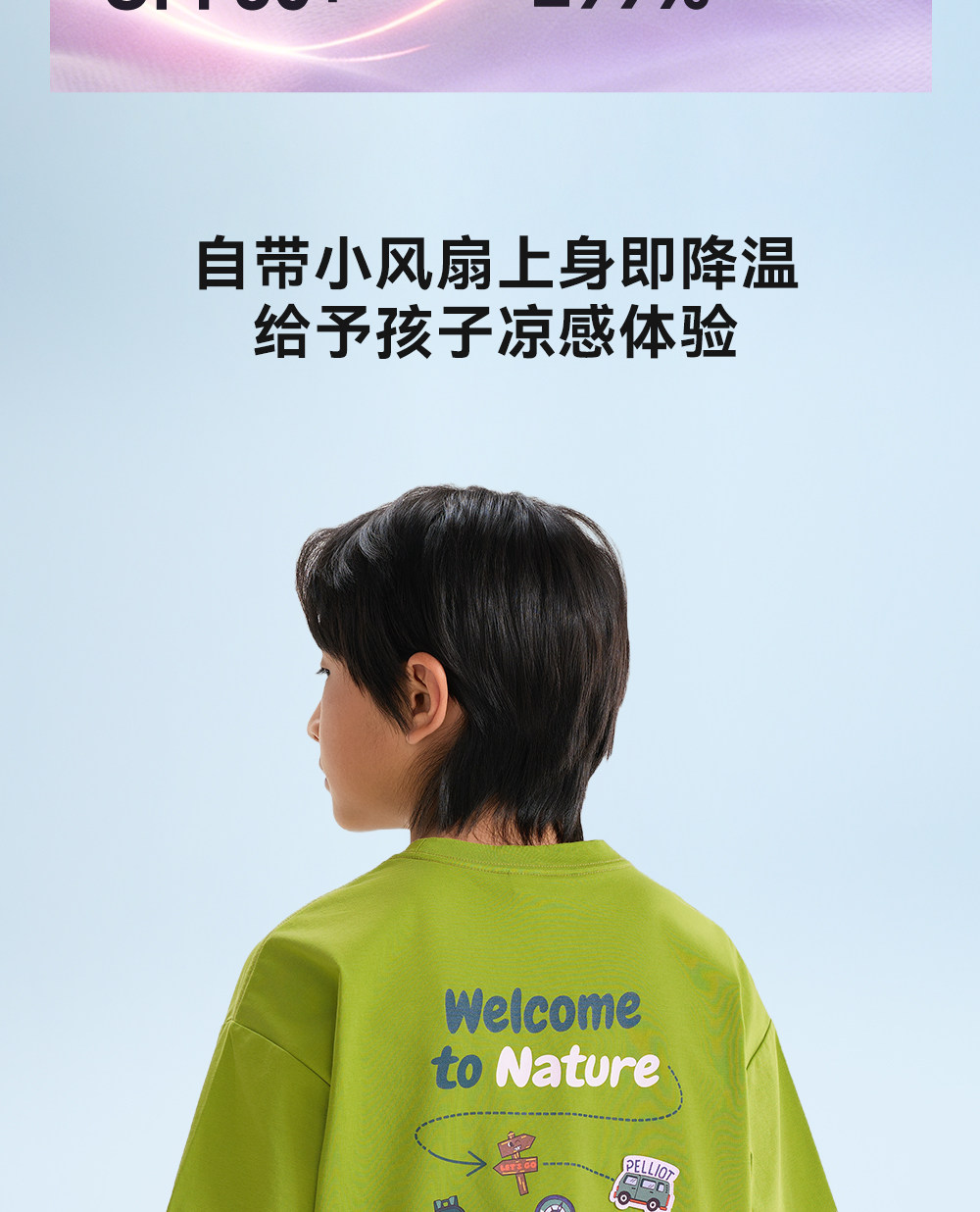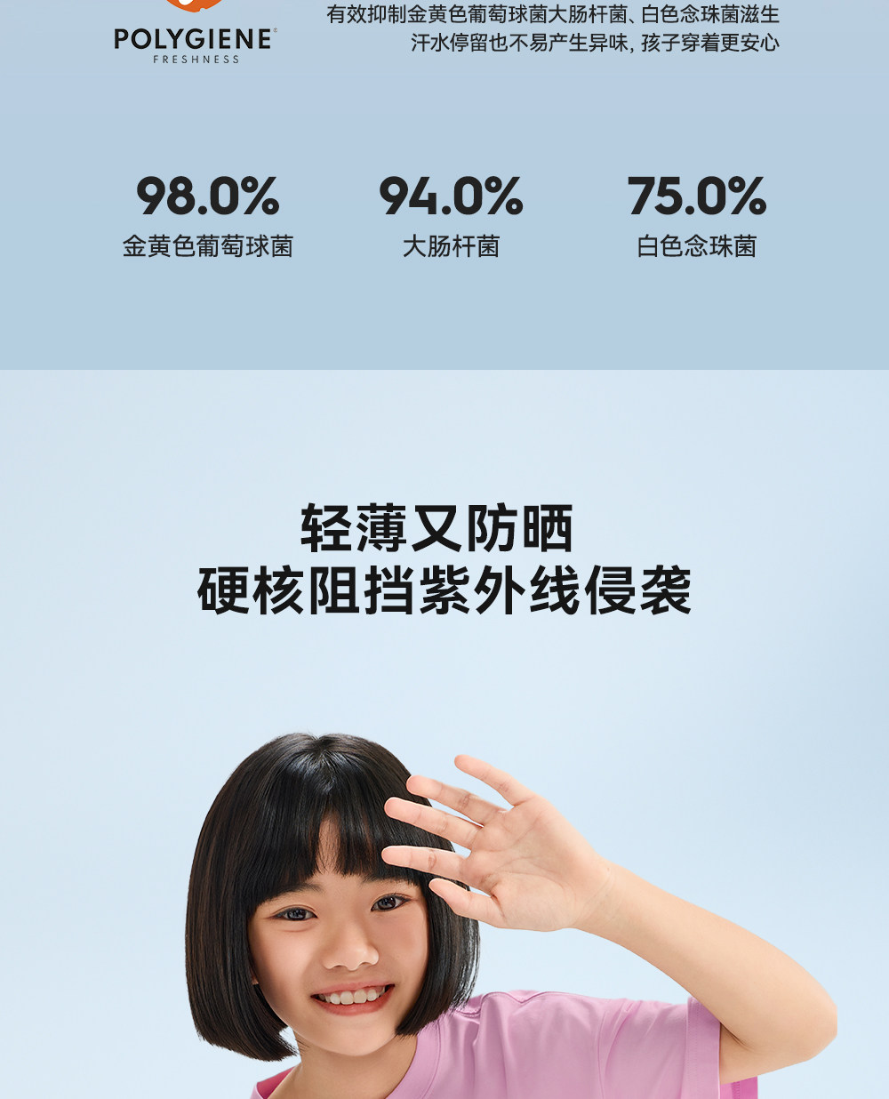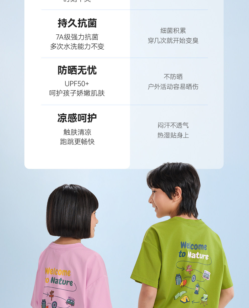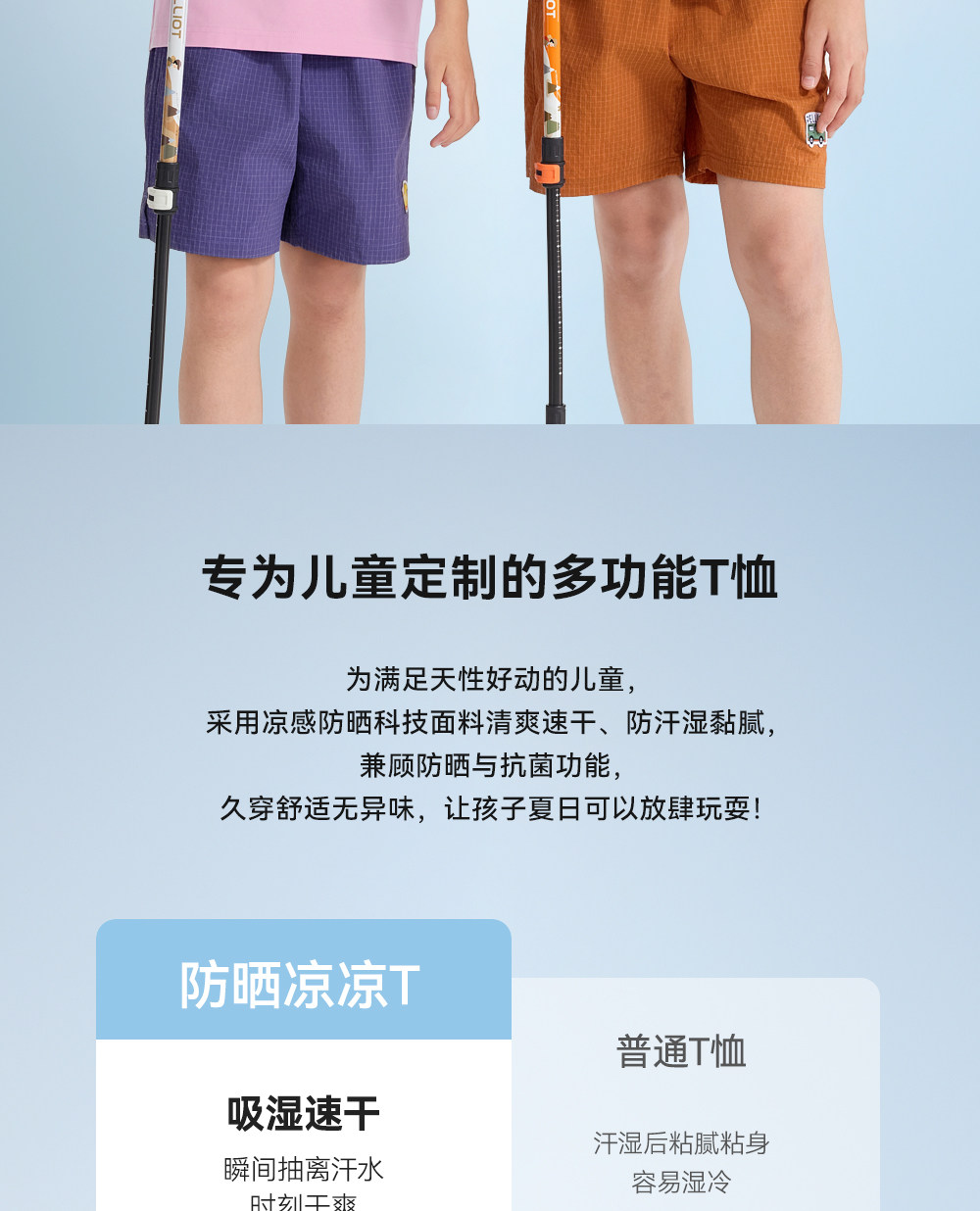 伯希和户外速干T恤儿童春季26新款凉感防晒短袖抑菌吸湿运动上衣
