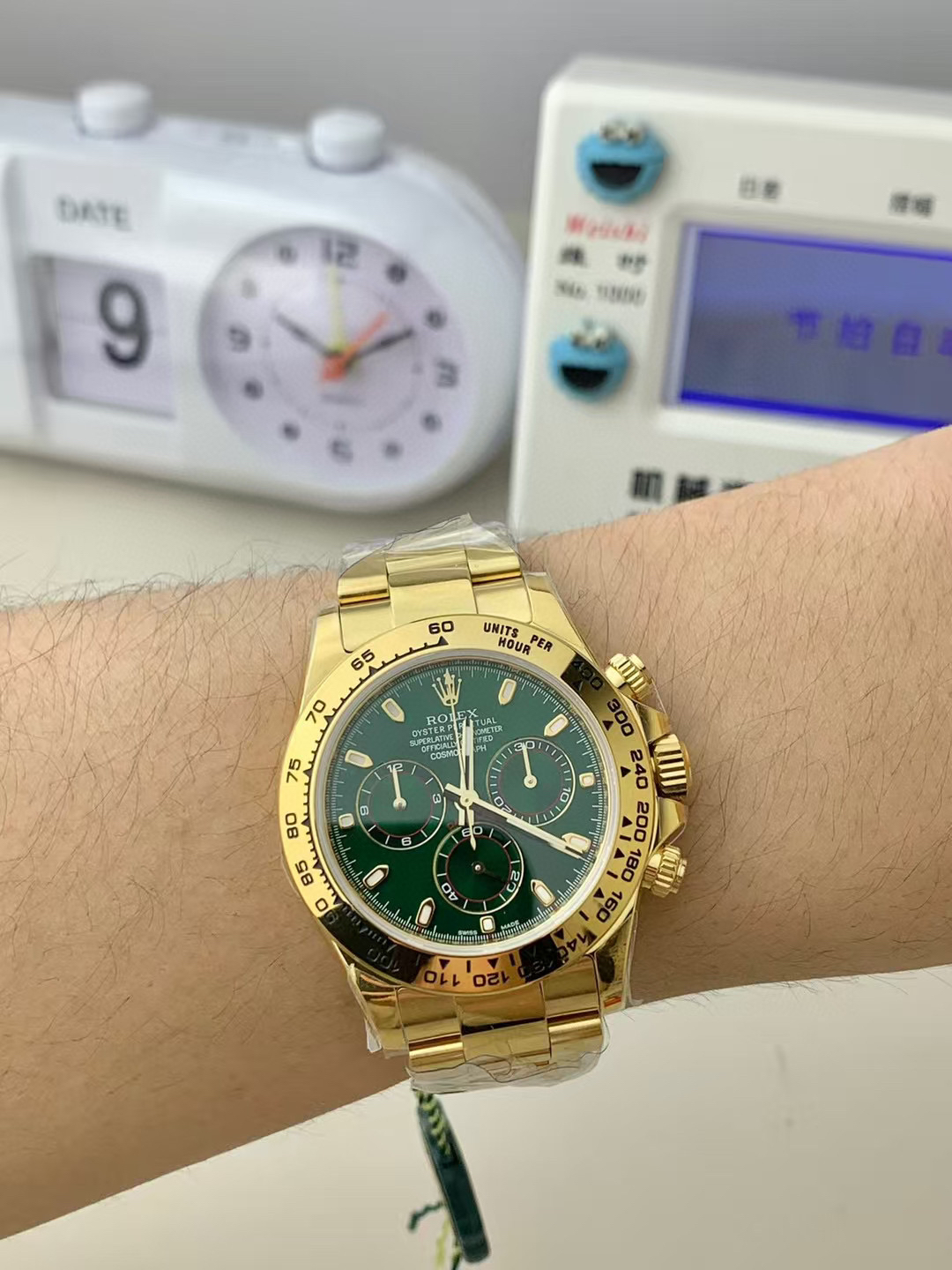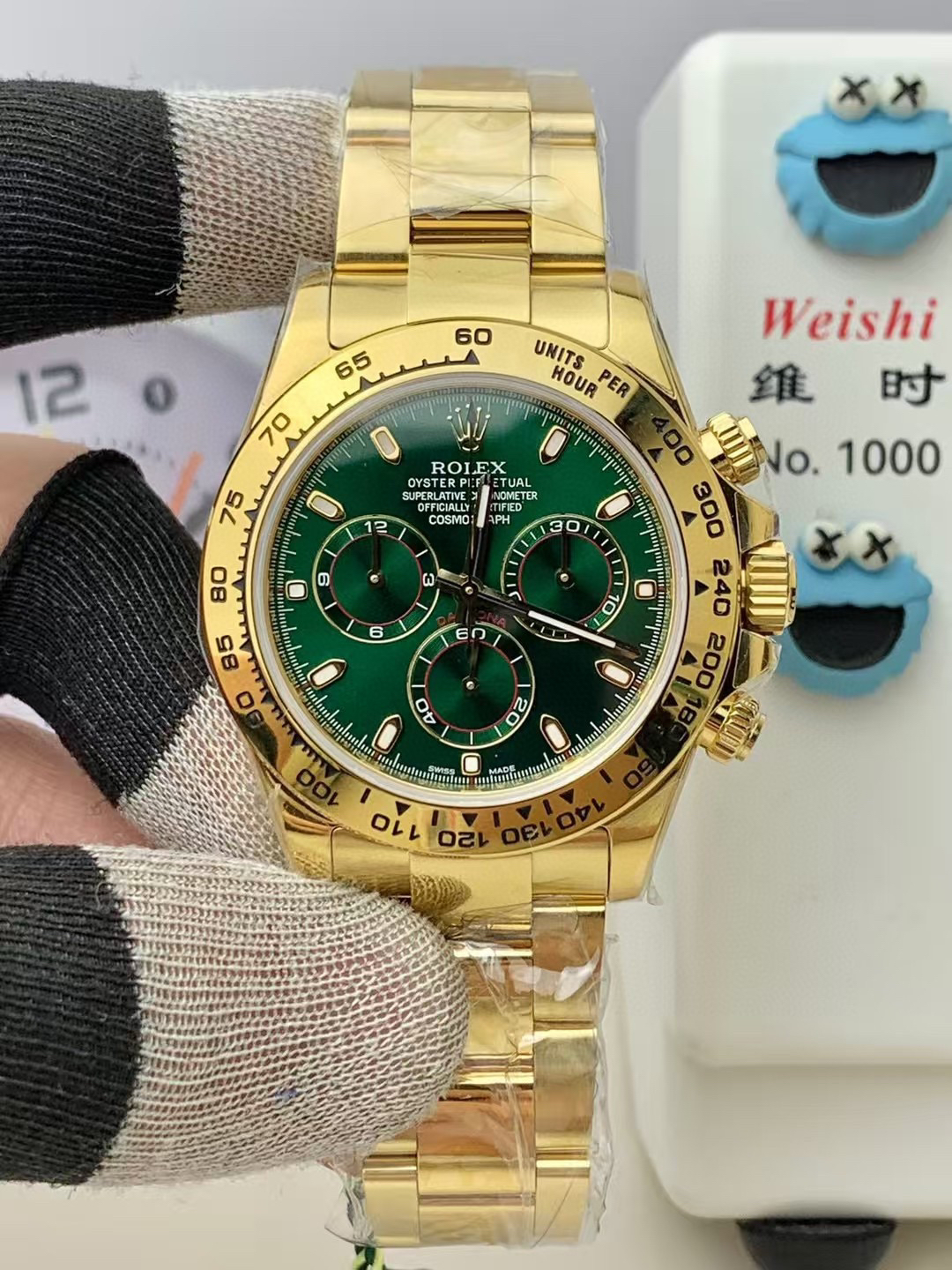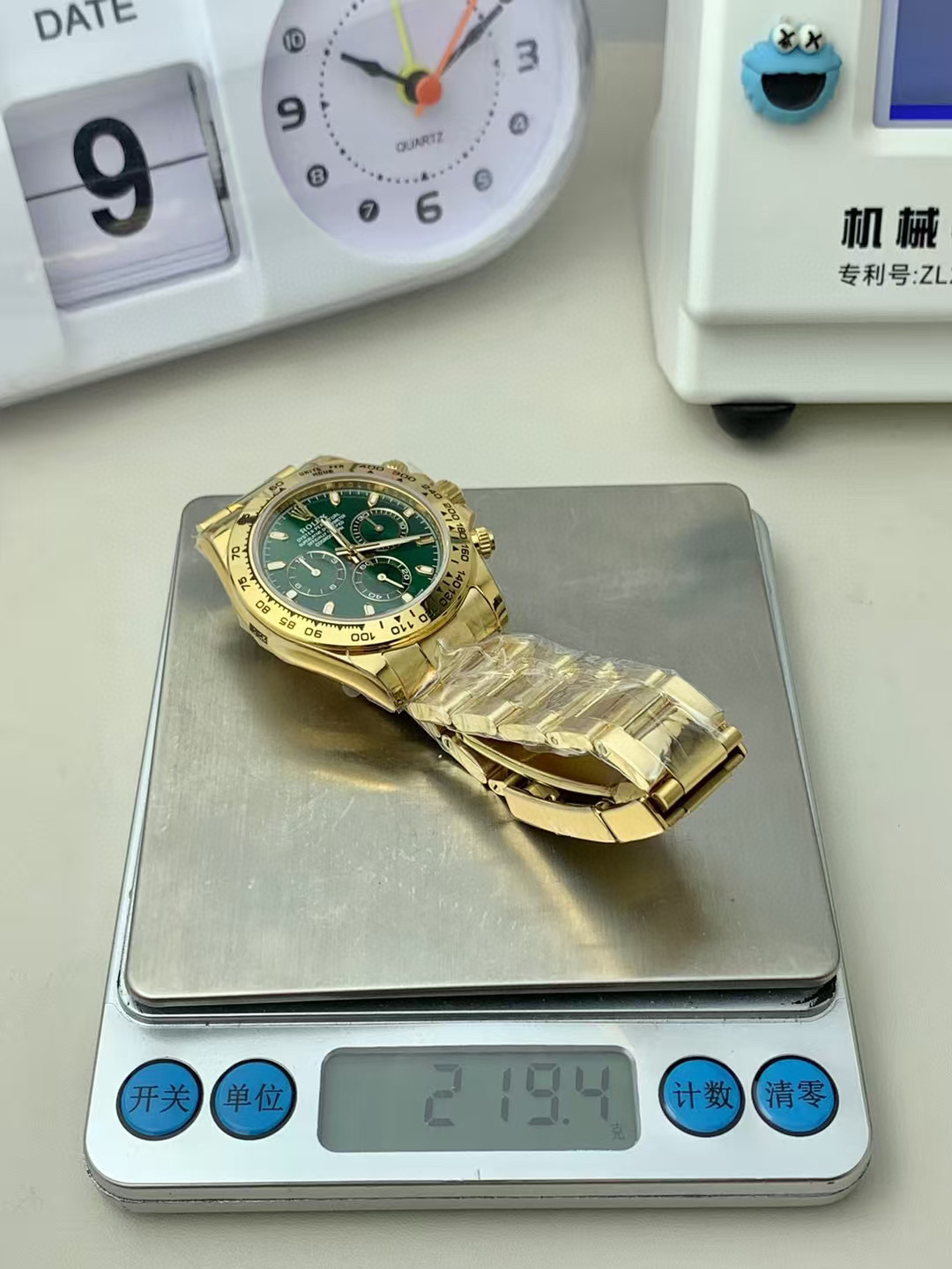 ZF.factory劳力士Rolex 绿金迪DAYTONA系列 迪通拿4130机芯“配重版”220g➕40MM*12MM的表壳整体采用贵金属材料和坚固耐用的蚝式精钢铸造,手感与硬度与正品一致❕❕