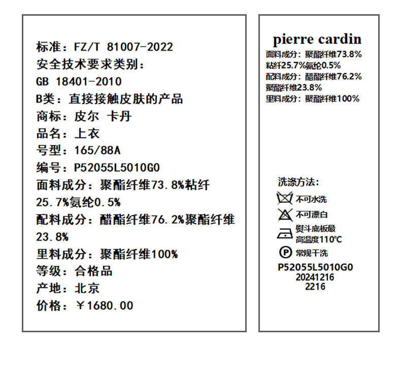 皮尔卡丹女装西服上衣P52055L5010G0