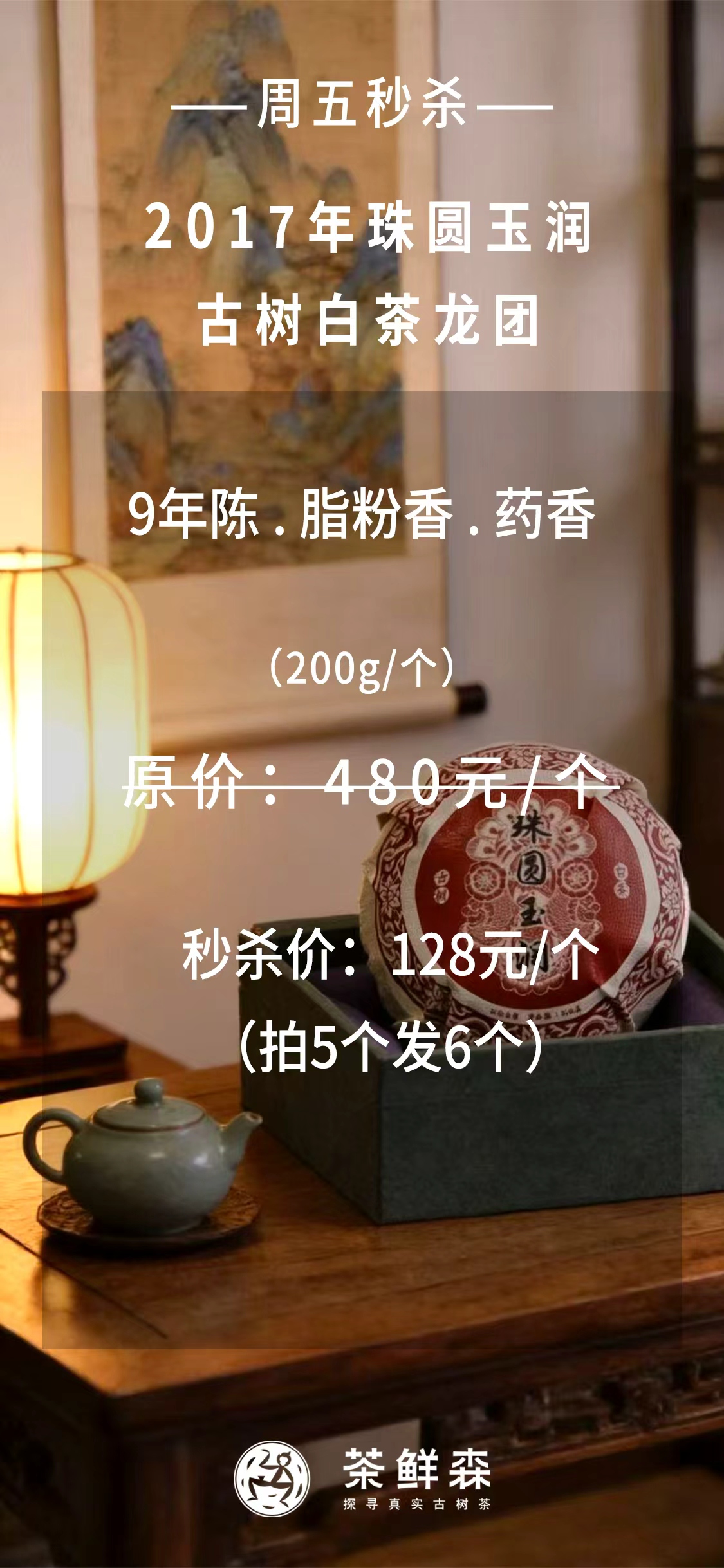 周五秒杀 / 2017年 珠圆玉润 古树白茶龙团 200g 脂粉香 药香