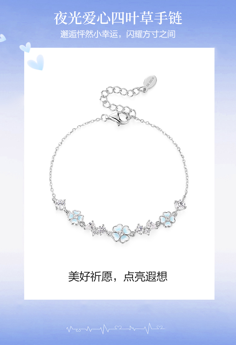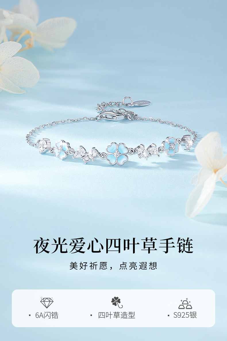 【夜光四叶草】夜光爱心四叶草手链 925银璀璨闪耀小众原创轻奢精致优雅气质浪漫百搭拼接链 告白甜蜜好运