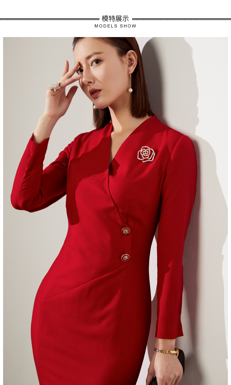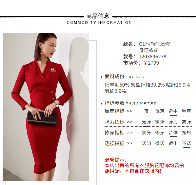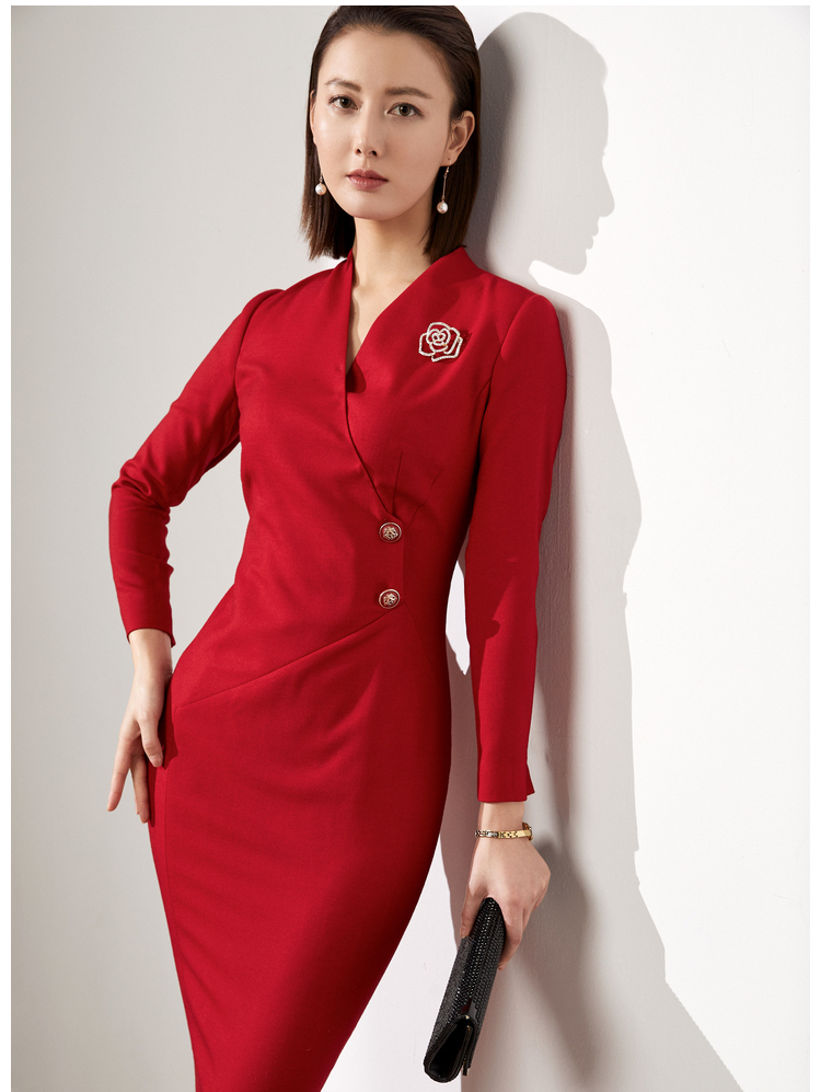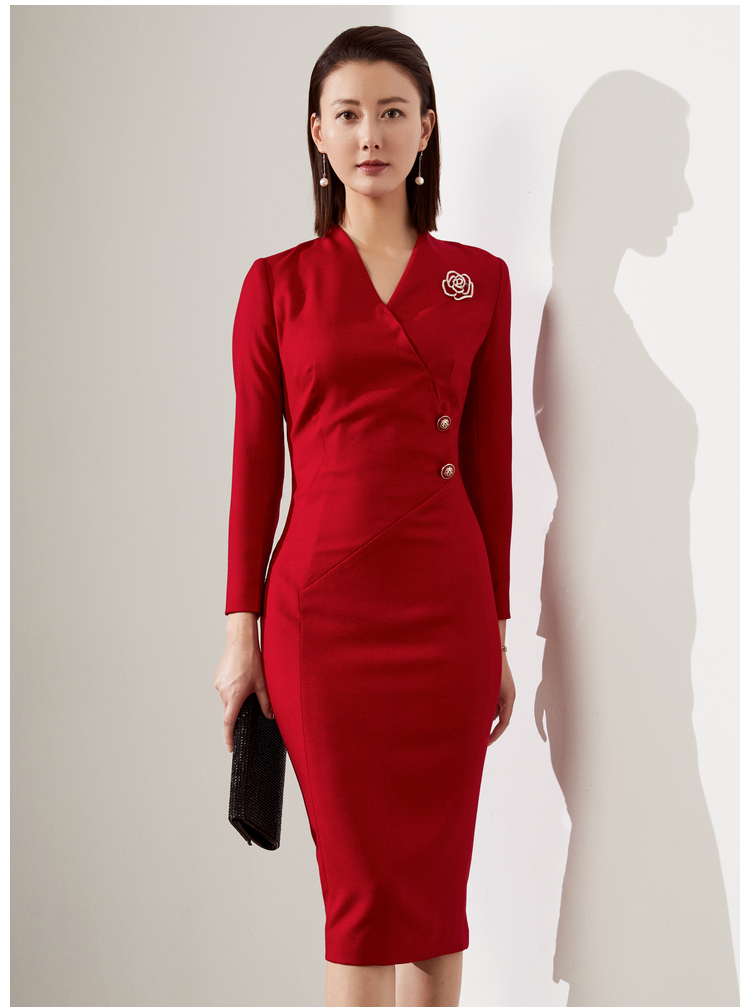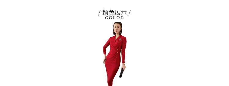 颈袖添香-连衣裙-J20384623A 颈袖添香季新款时尚修身气质红中长款包臀显瘦女士连衣裙 立体 显瘦 修身