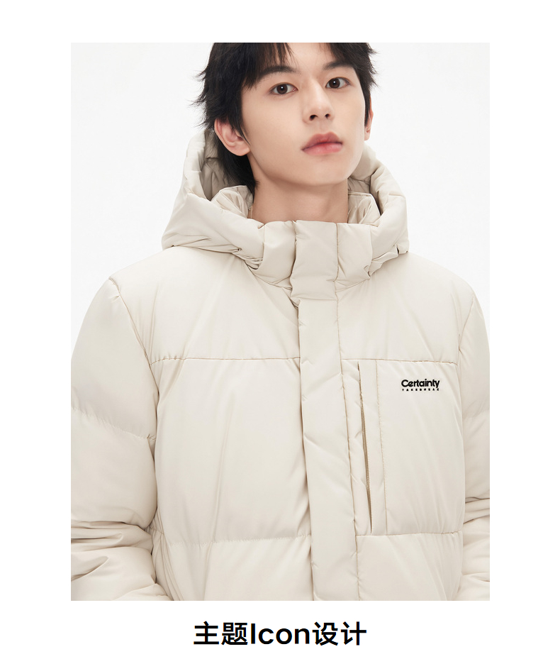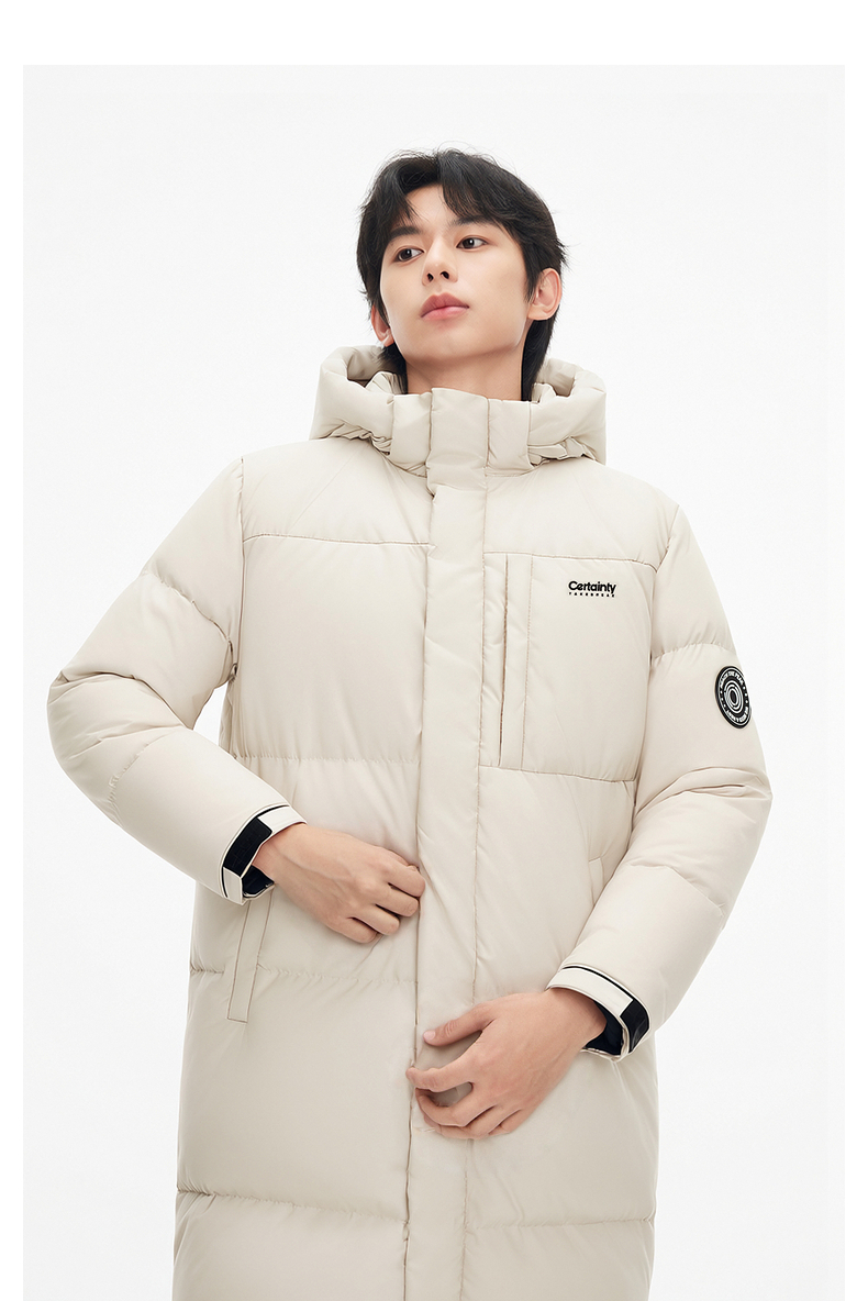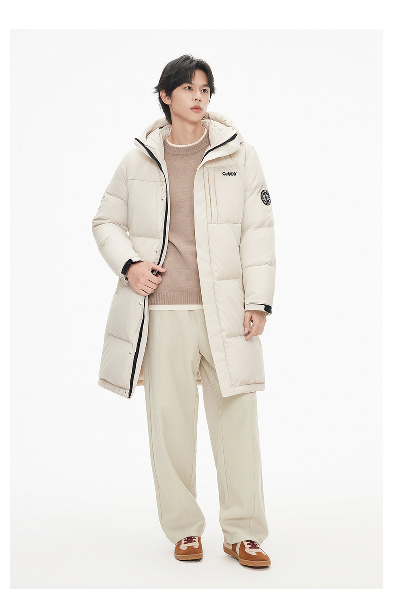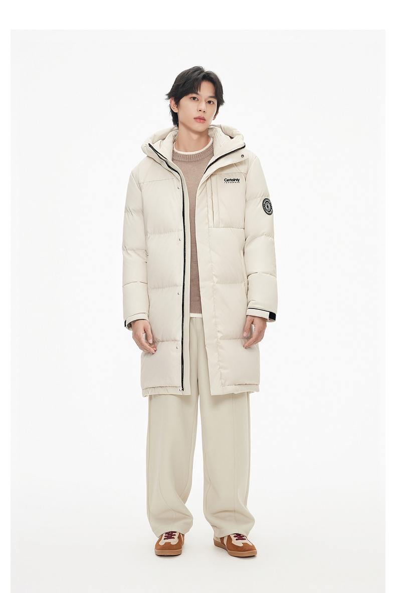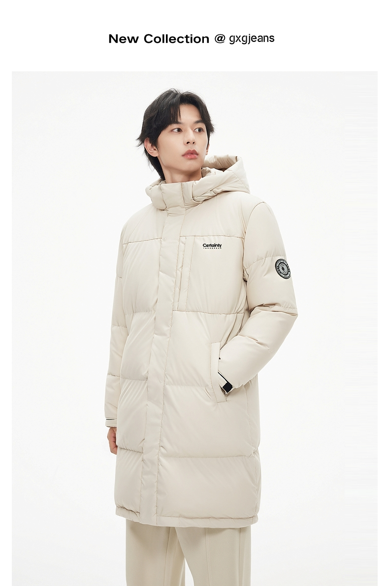 gxg.jeans男装 冬季中长款杏色连帽羽绒服J24XE114083