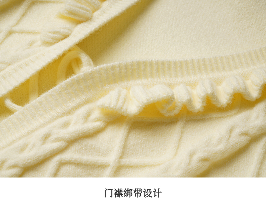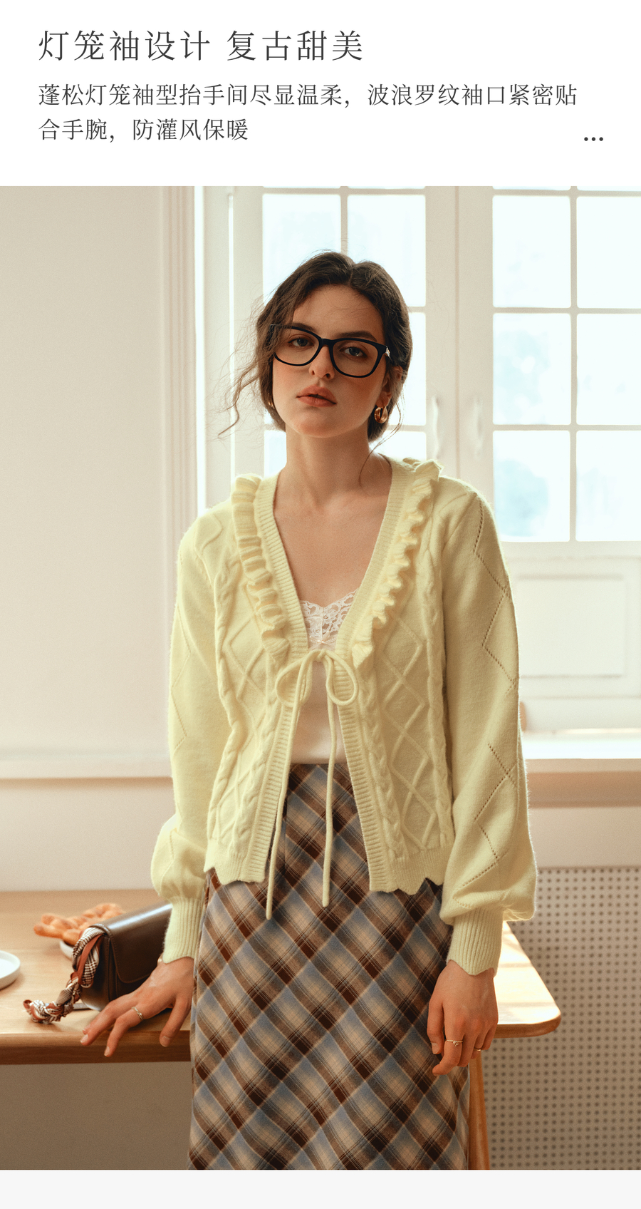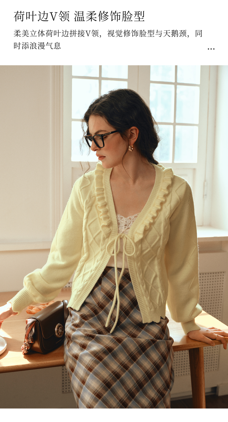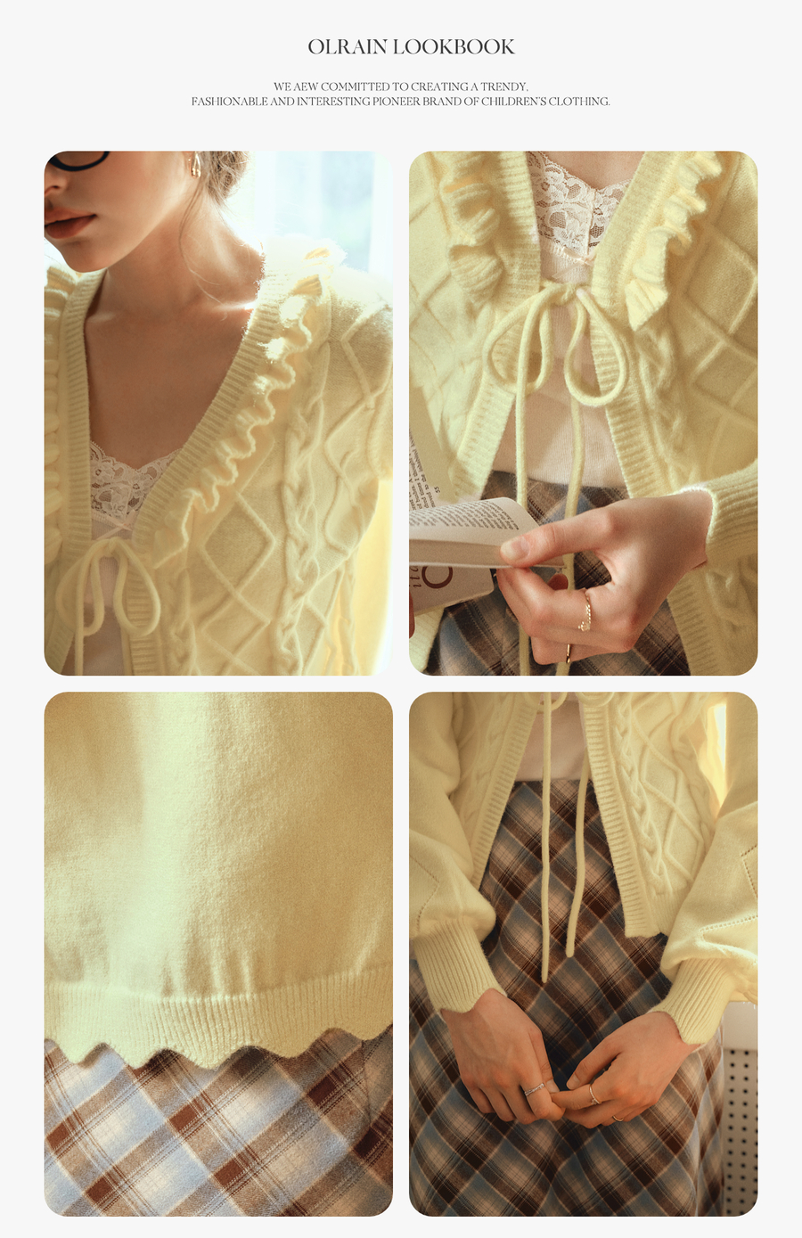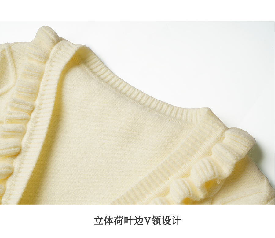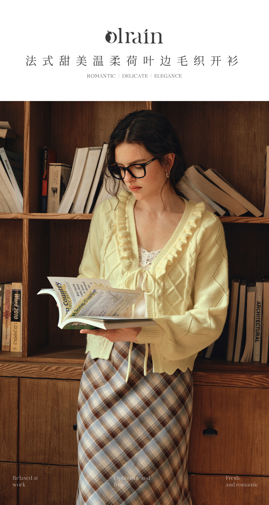 OLrain欧芮儿2025新款女秋季法式甜美温柔荷叶边V领毛织开衫上衣