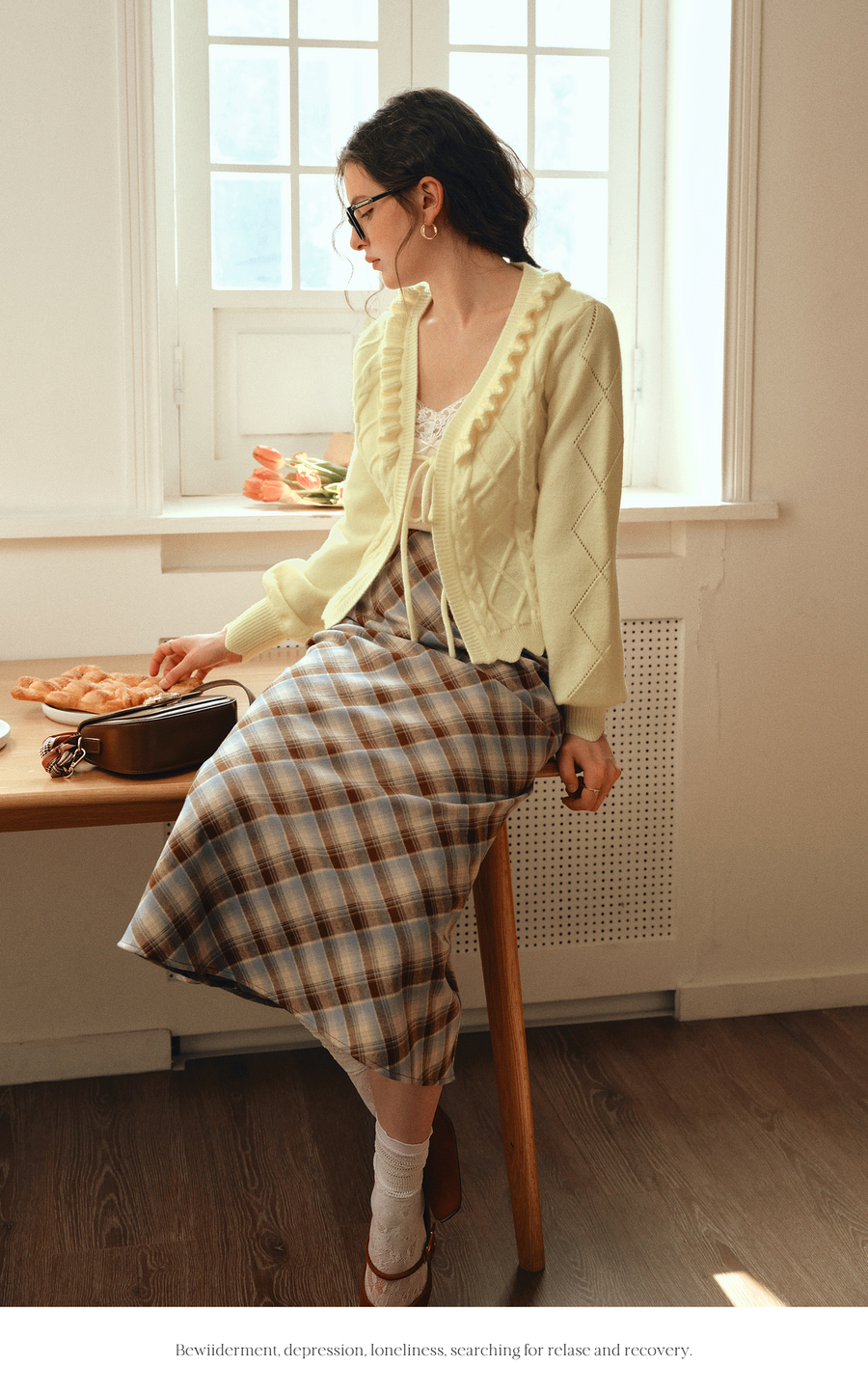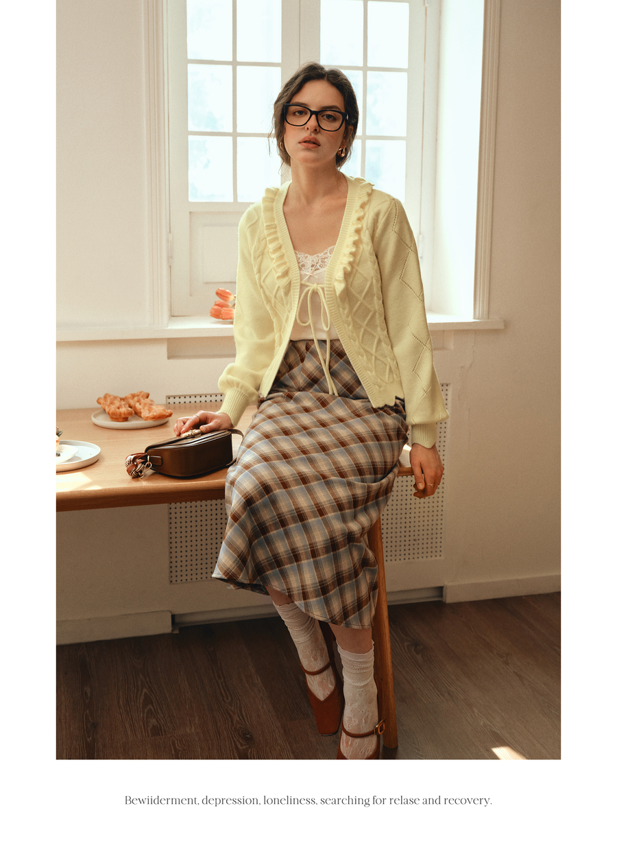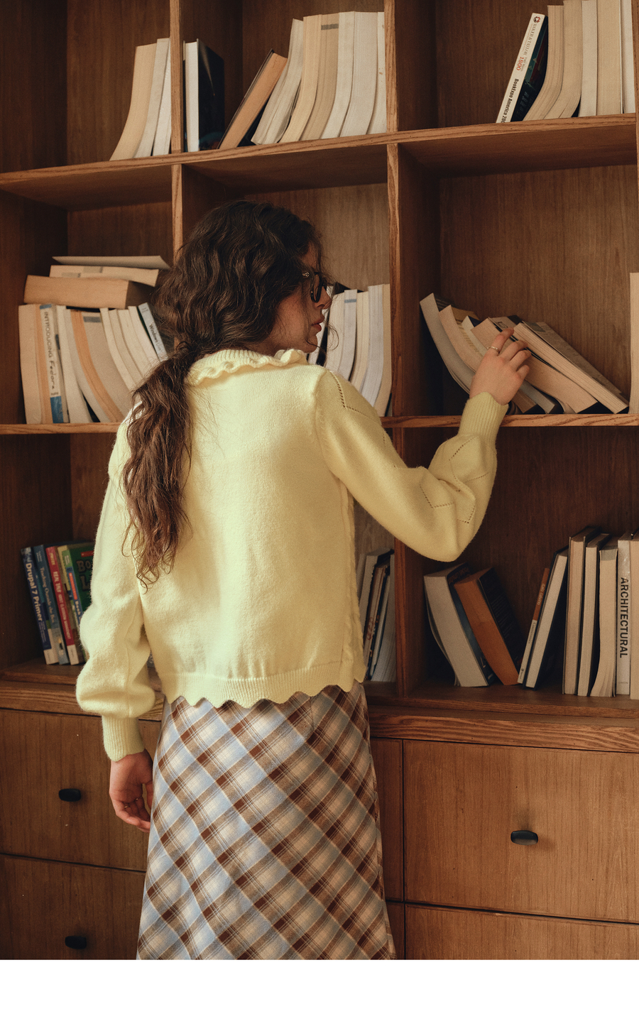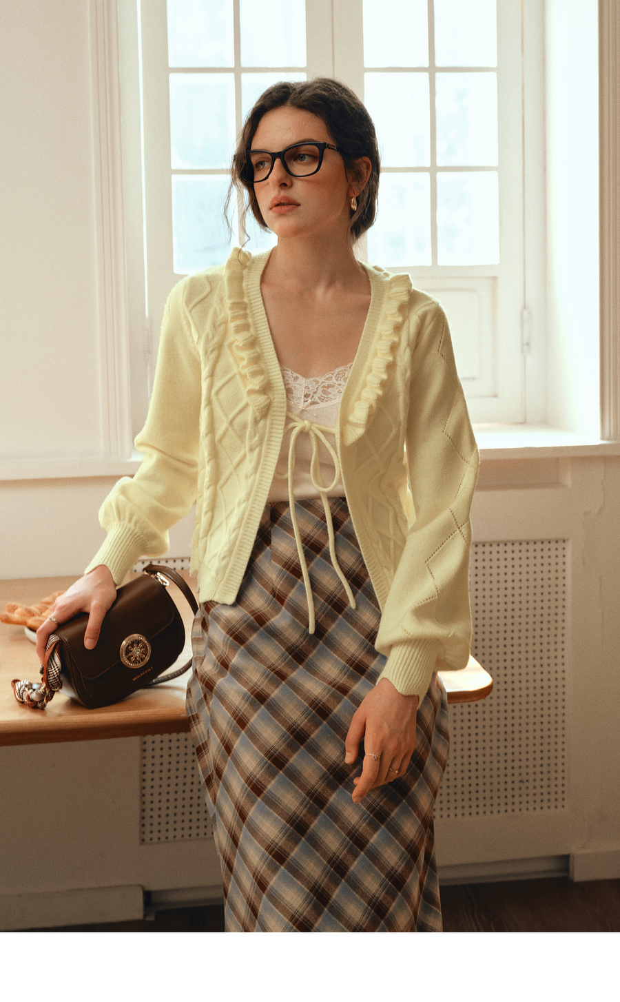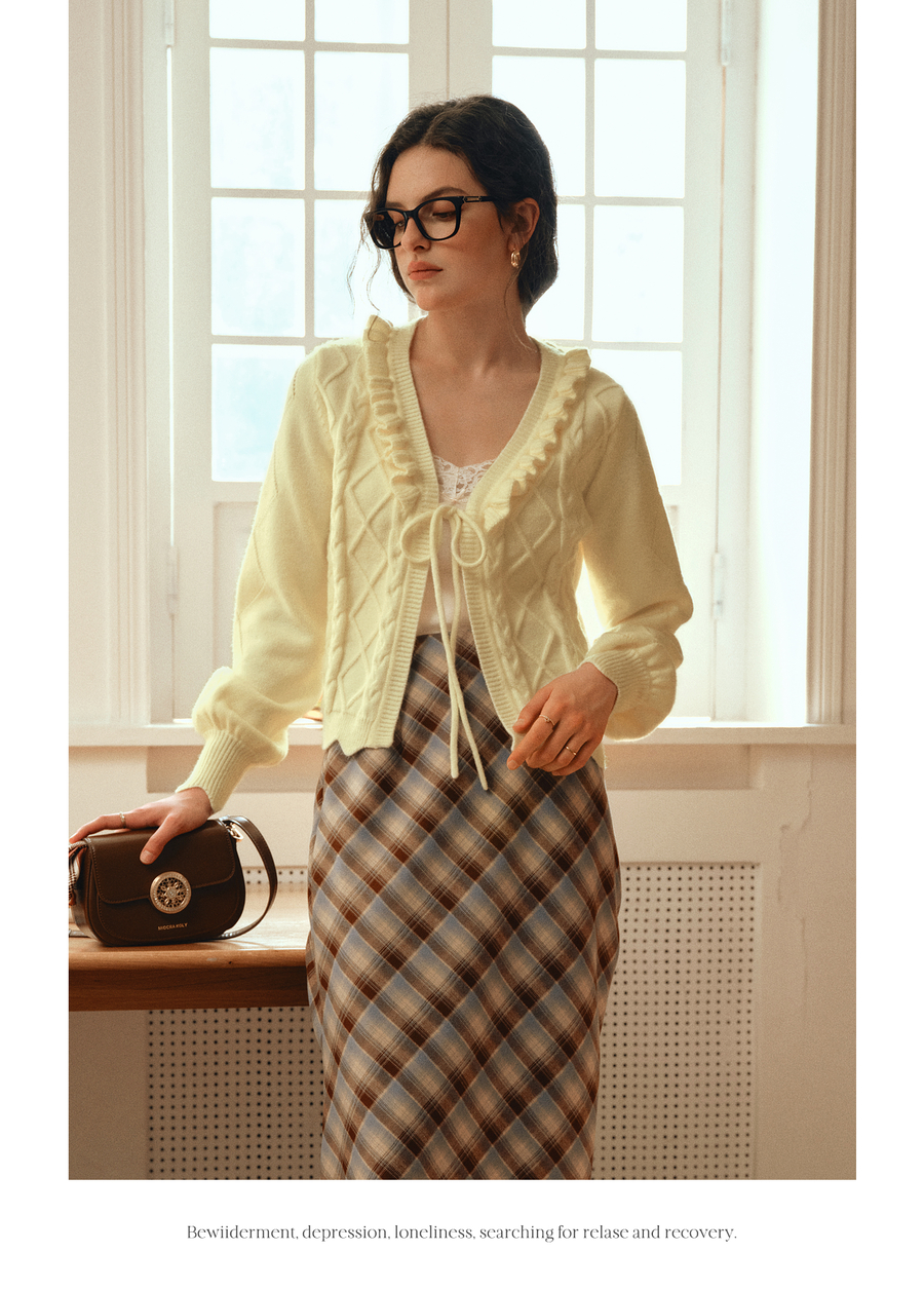 OLrain欧芮儿2025新款女秋季法式甜美温柔荷叶边V领毛织开衫上衣