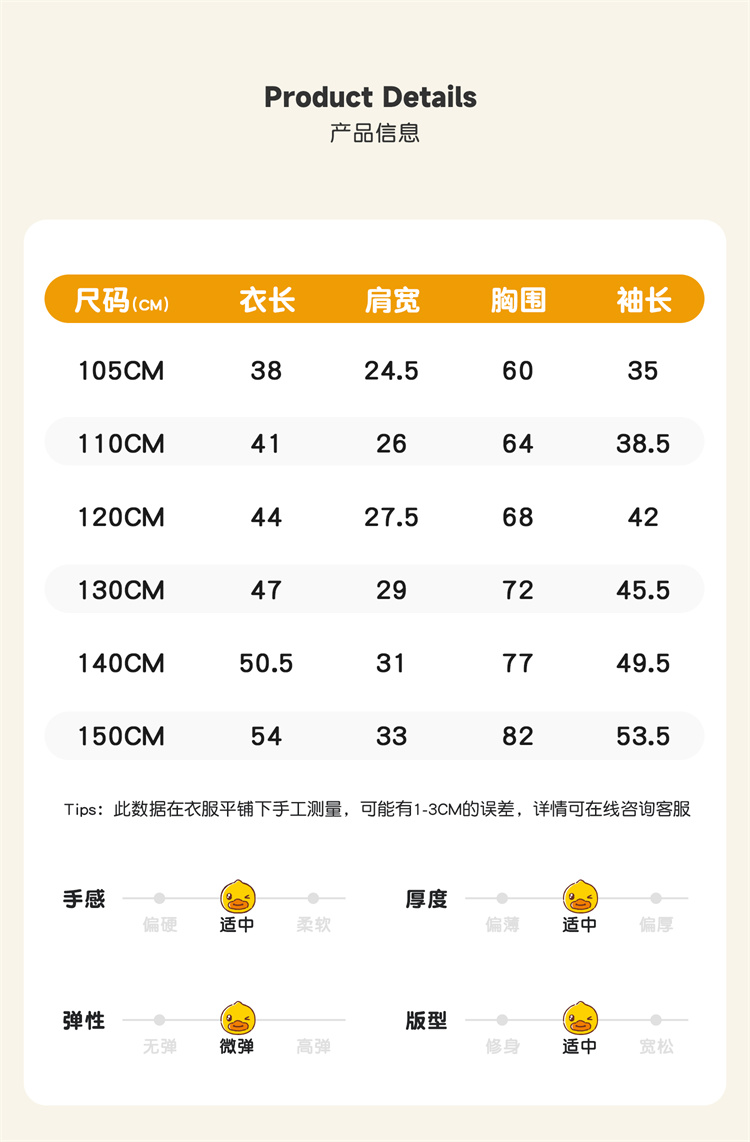 bduck小黄鸭童装冬季男女童长袖T恤105-150 BF5406063